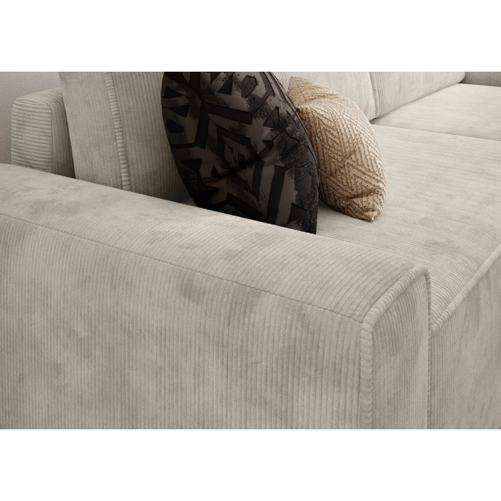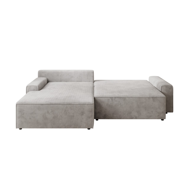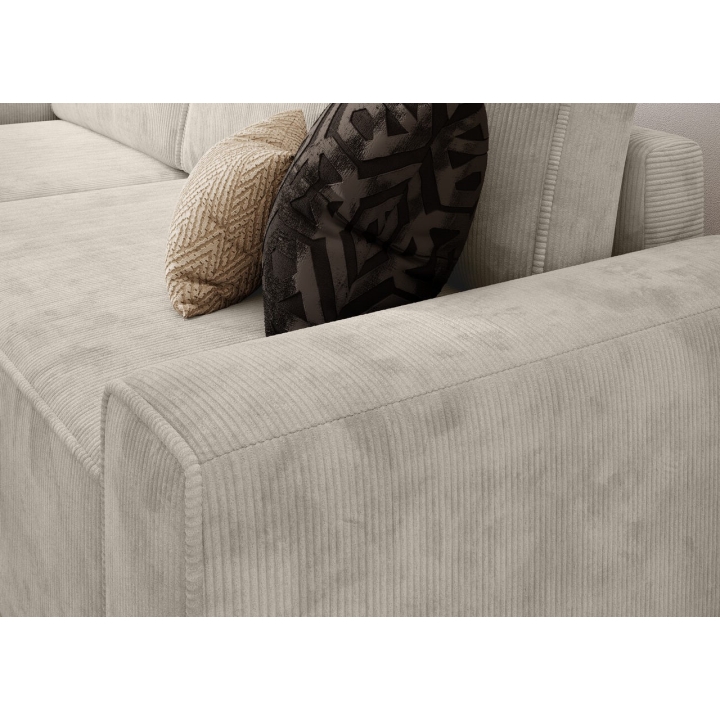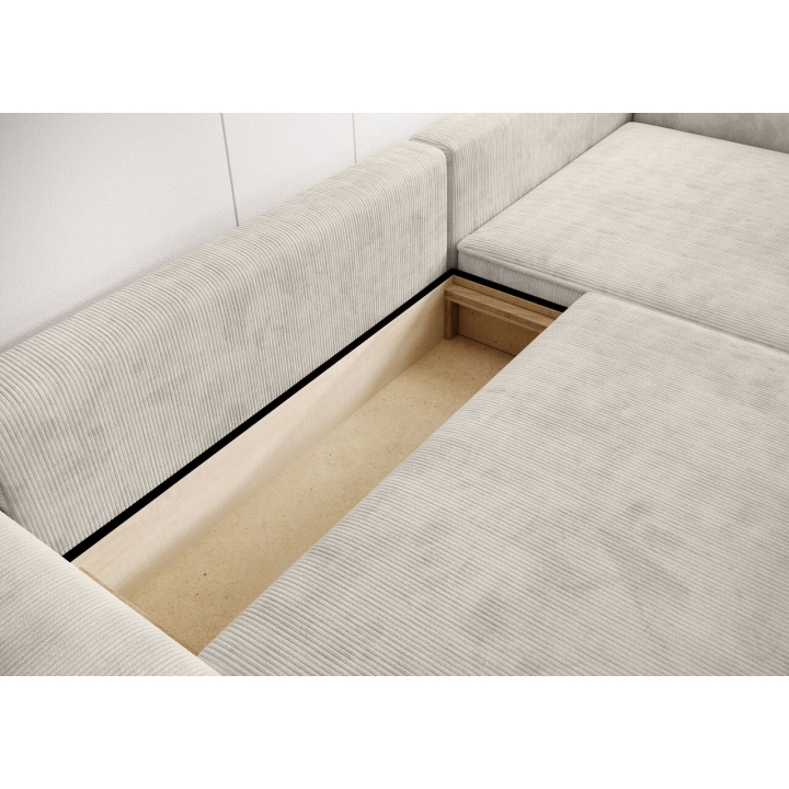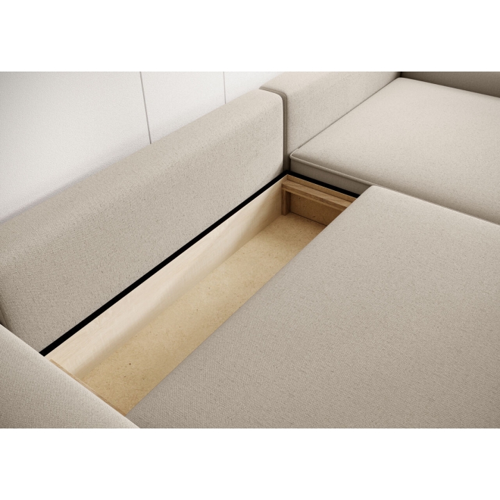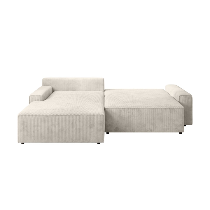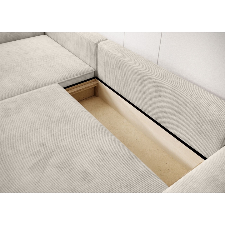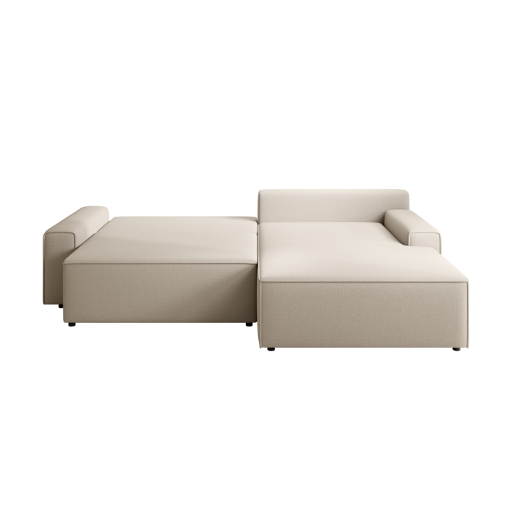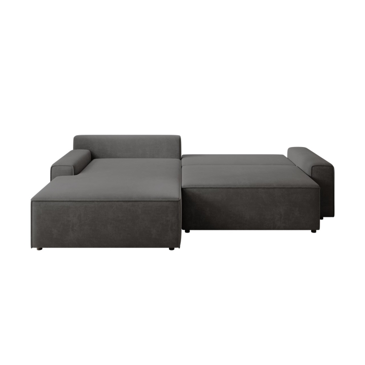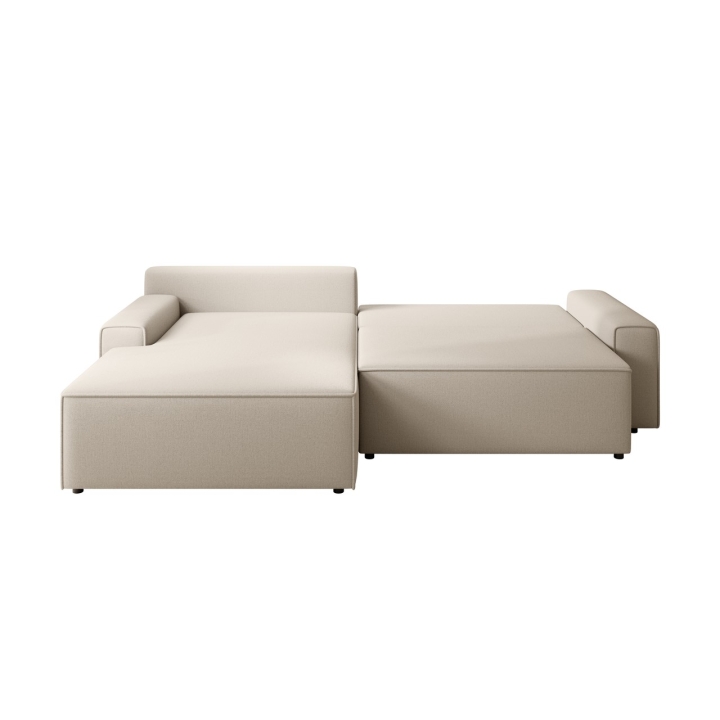 Narożnik posiada funkcję spania typu DL z powierzchnią o wymiarach 114 x 199 cm, co umożliwia stworzenie dodatkowego miejsca noclegowego. Dodatkowo mebel został wyposażony w pojemnik na pościel, pozwalający na wygodne przechowywanie kołder i poduszek. Dzięki temu narożnik spełnia rolę nie tylko miejsca do odpoczynku w ciągu dnia, ale także zapewnia praktyczne rozwiązanie na noc.