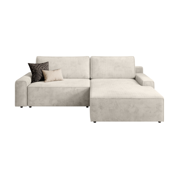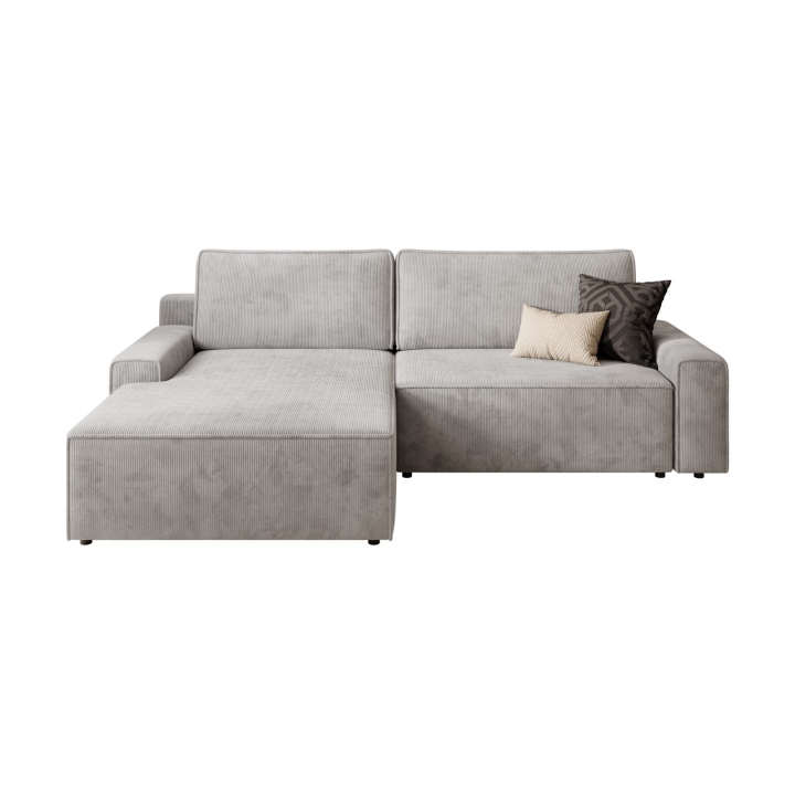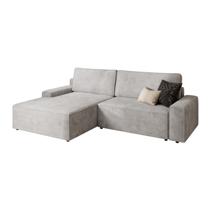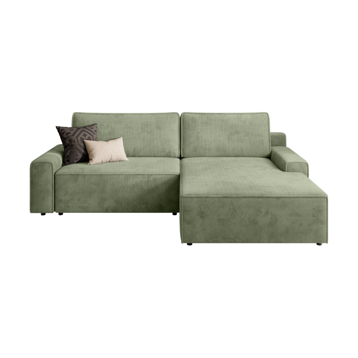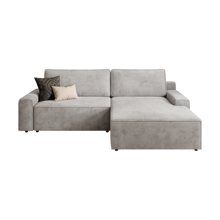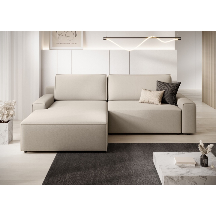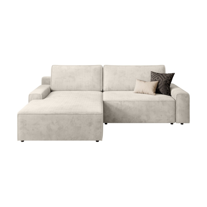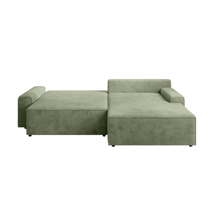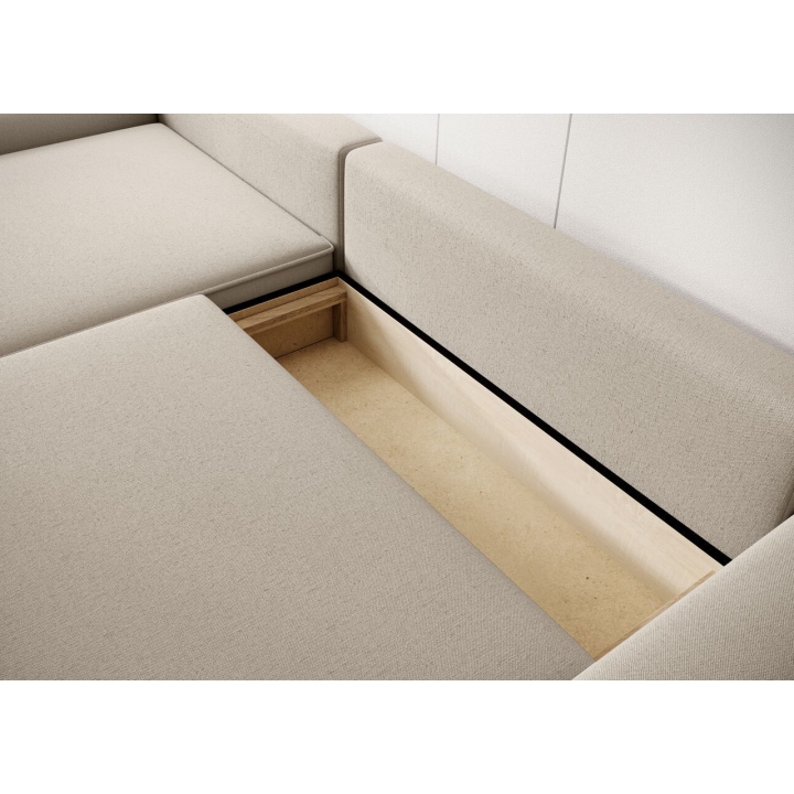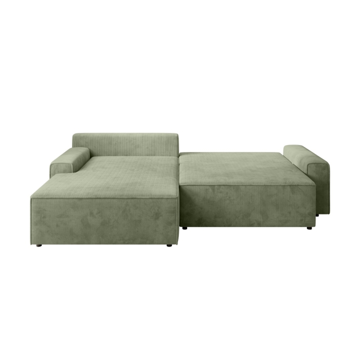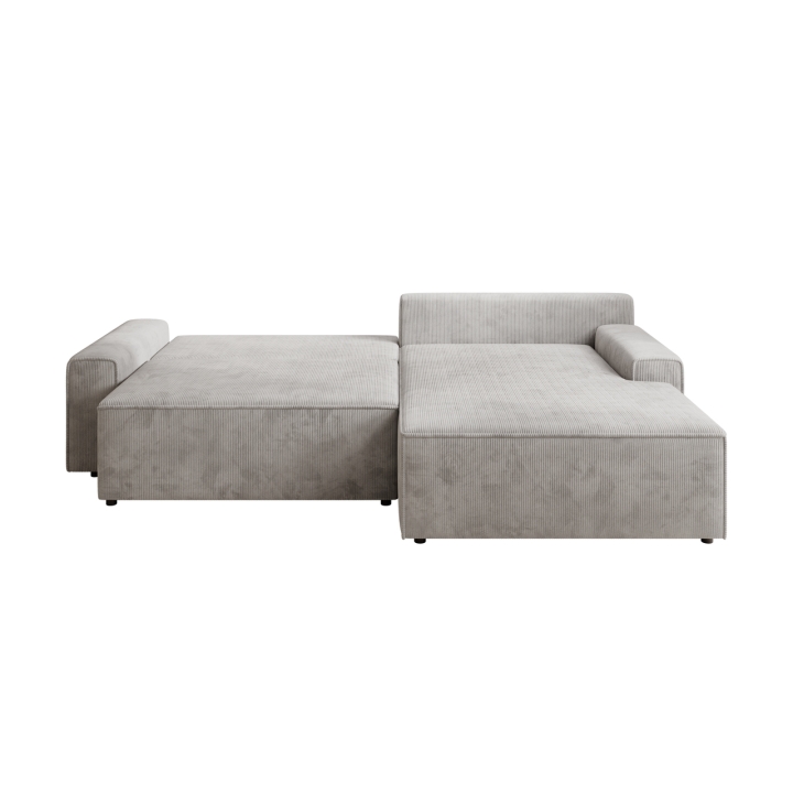 Narożnik posiada funkcję spania typu DL z powierzchnią o wymiarach 114 x 199 cm, co umożliwia stworzenie dodatkowego miejsca noclegowego. Dodatkowo mebel został wyposażony w pojemnik na pościel, pozwalający na wygodne przechowywanie kołder i poduszek. Dzięki temu narożnik spełnia rolę nie tylko miejsca do odpoczynku w ciągu dnia, ale także zapewnia praktyczne rozwiązanie na noc.