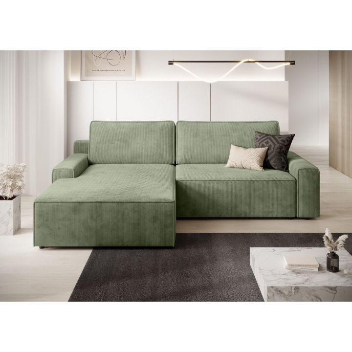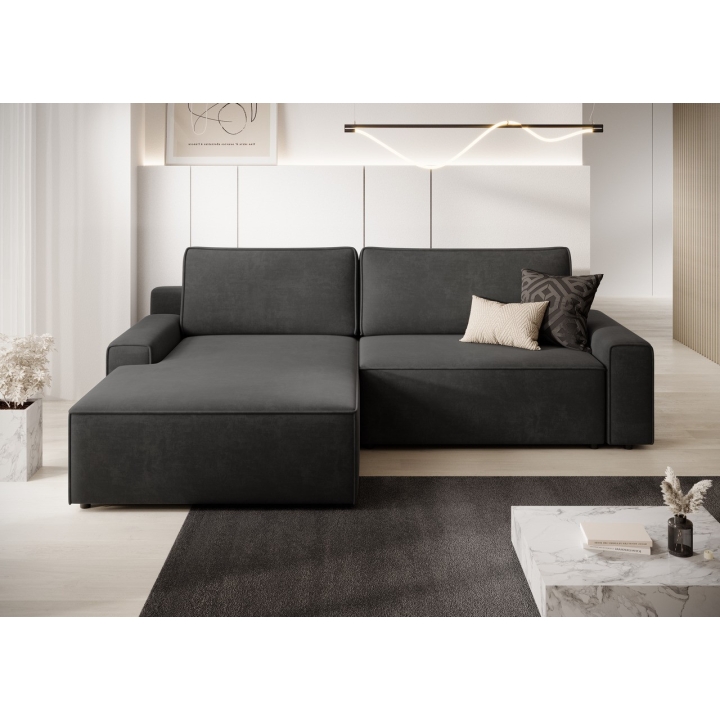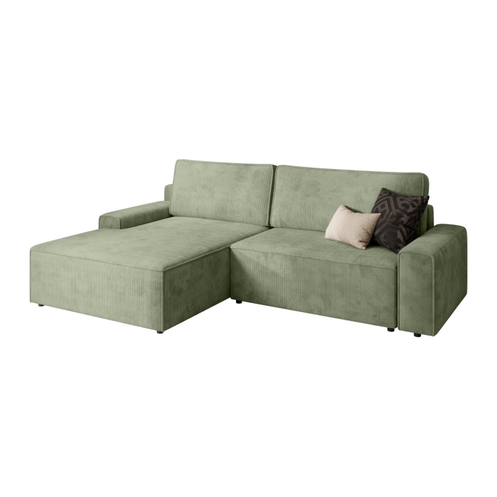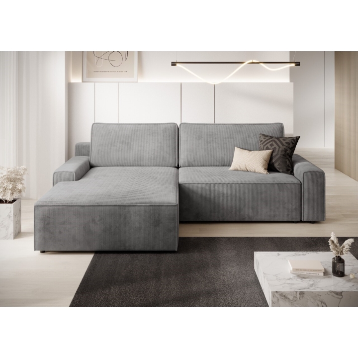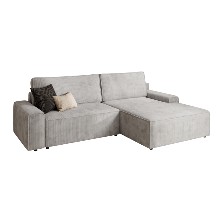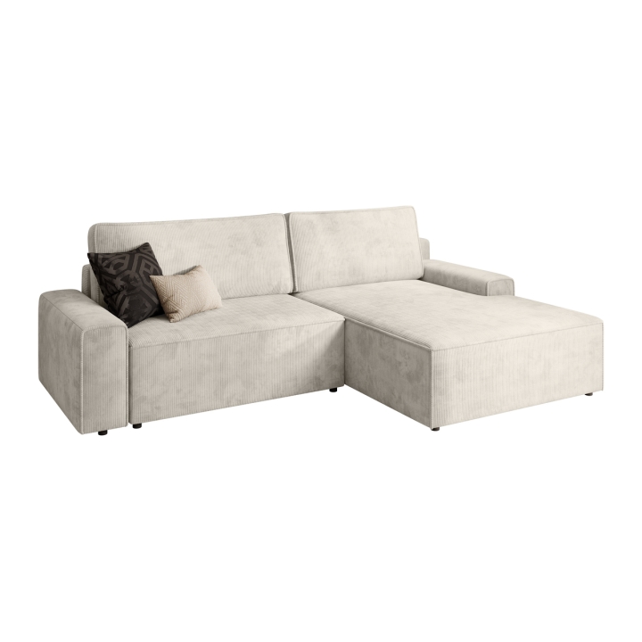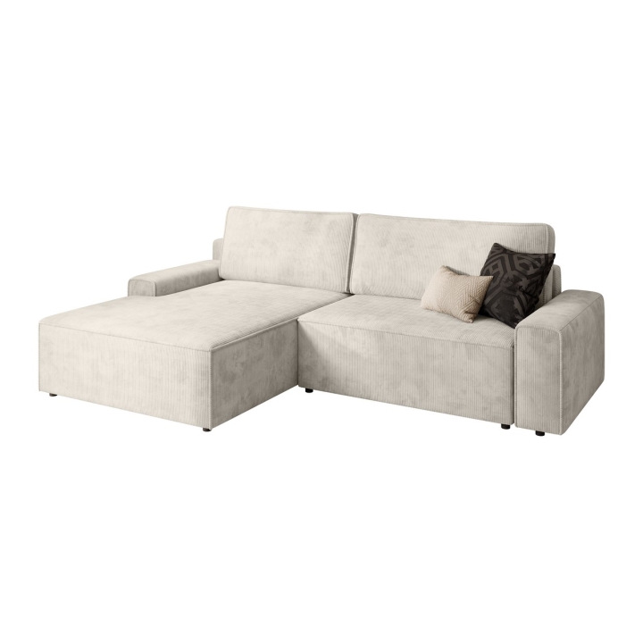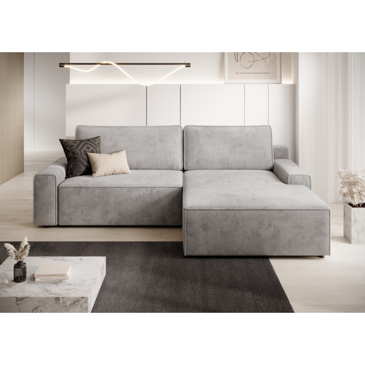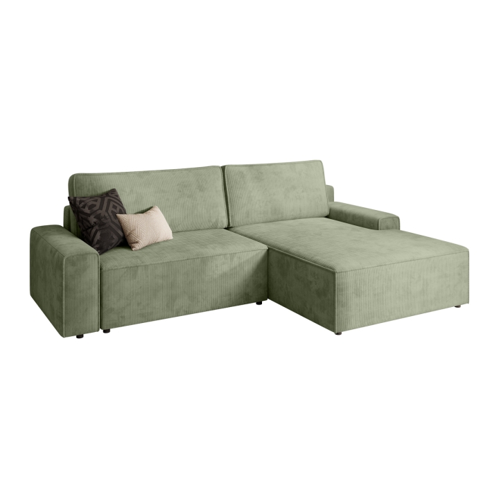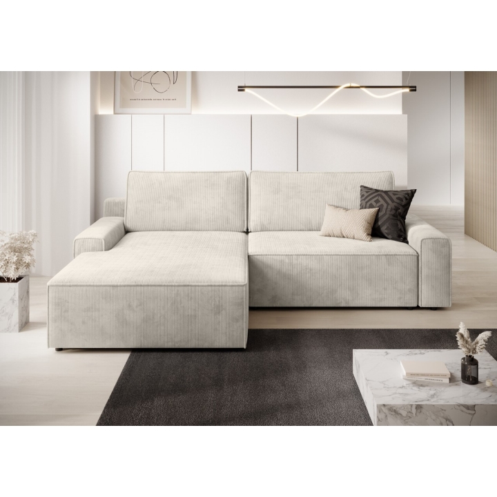 Narożnik posiada funkcję spania typu DL z powierzchnią o wymiarach 114 x 199 cm, co umożliwia stworzenie dodatkowego miejsca noclegowego. Dodatkowo mebel został wyposażony w pojemnik na pościel, pozwalający na wygodne przechowywanie kołder i poduszek. Dzięki temu narożnik spełnia rolę nie tylko miejsca do odpoczynku w ciągu dnia, ale także zapewnia praktyczne rozwiązanie na noc.