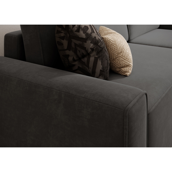 Narożnik Challenge to propozycja stworzona z myślą o osobach ceniących komfort codziennego wypoczynku. Mebel dostępny jest w wersji prawostronnej lub lewostronnej, co umożliwia dopasowanie go do układu wnętrza. Jego bryła w kształcie litery „L” sprawia, że doskonale wypełnia przestrzeń salonu, jednocześnie oferując dużą powierzchnię użytkową.