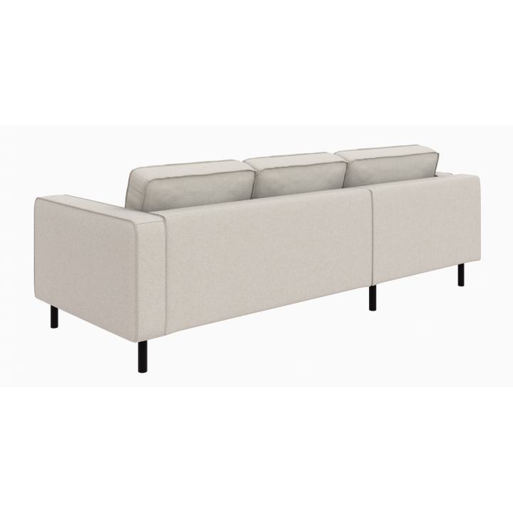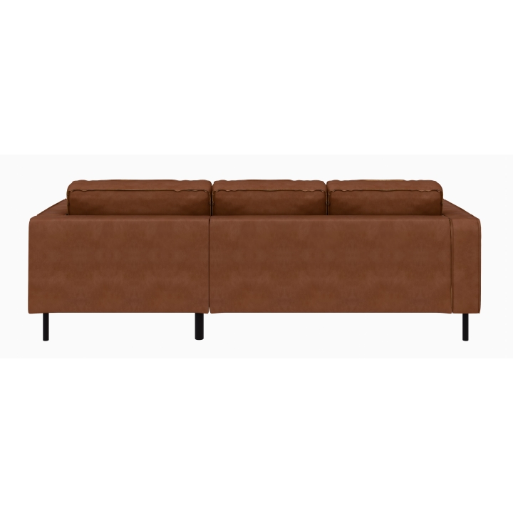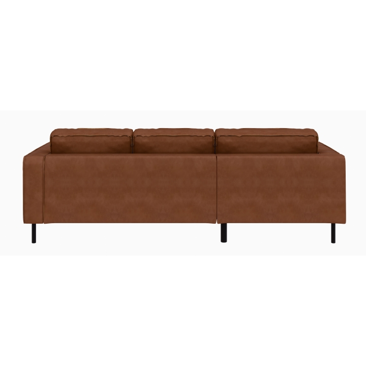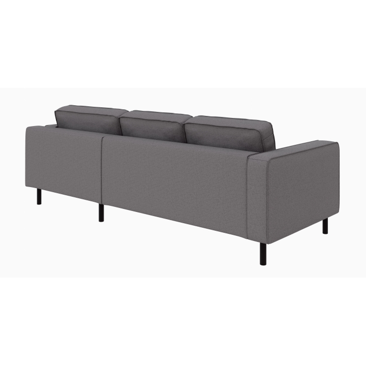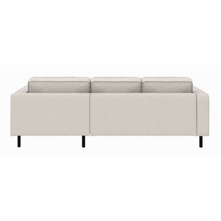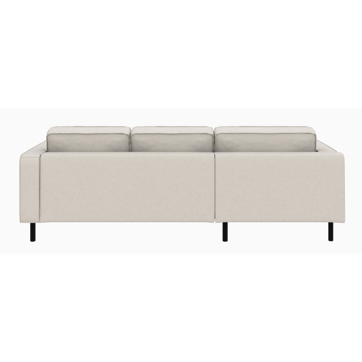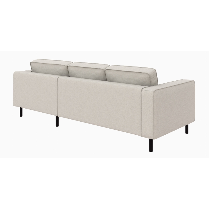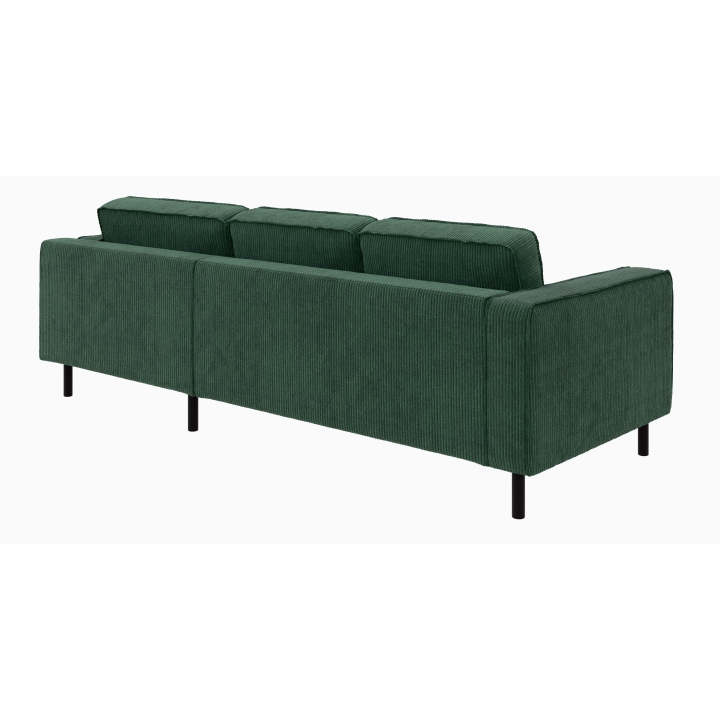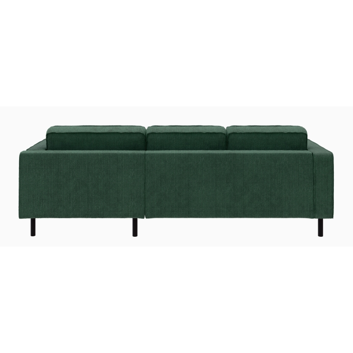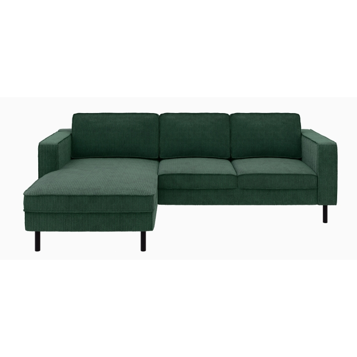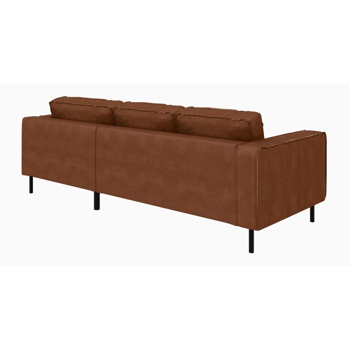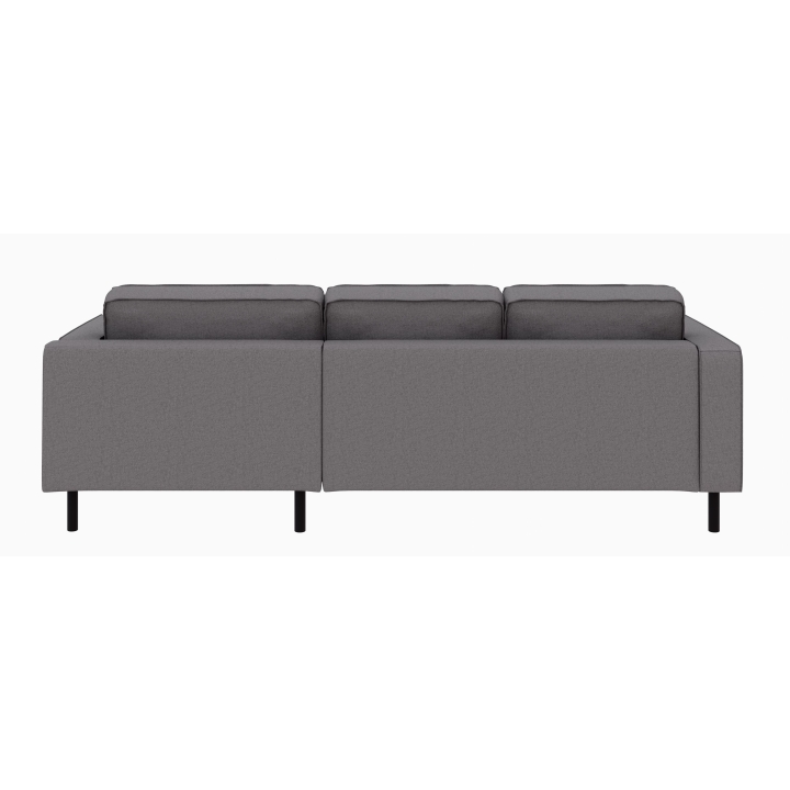 Mebel wyróżnia się charakterystycznym szwem, który można wybrać w wersji otwartej lub francuskiej (opcja dostępna za dodatkową opłatą w celu jej wyboru skontaktuj się z działem obsługi klienta). Całość osadzona jest na czarnych, matowych nogach z tworzywa o wysokości 15 cm, nadających bryle lekkości. Zastosowanie wysokiej nogi ułatwia także utrzymanie czystości pod narożnikiem.