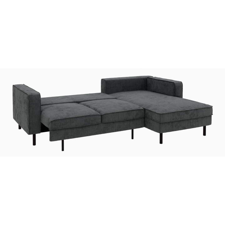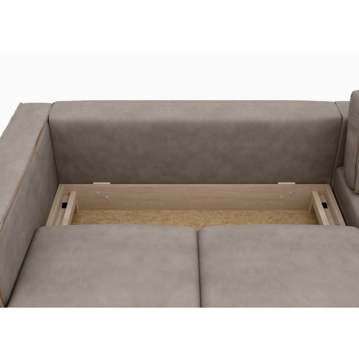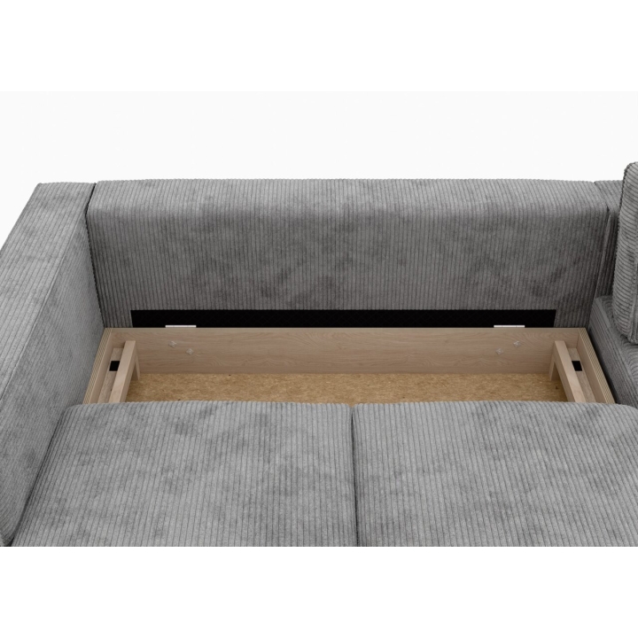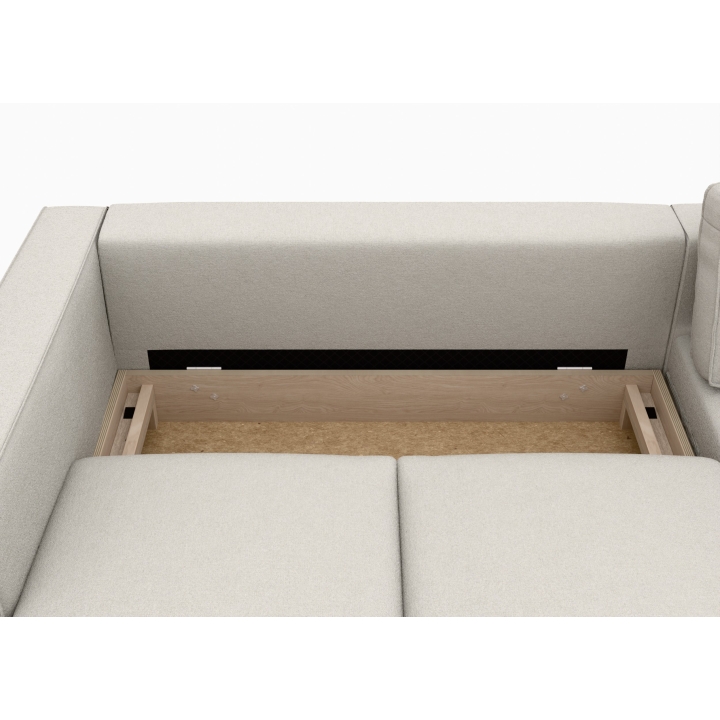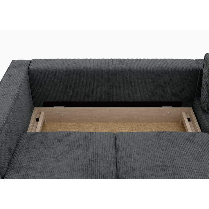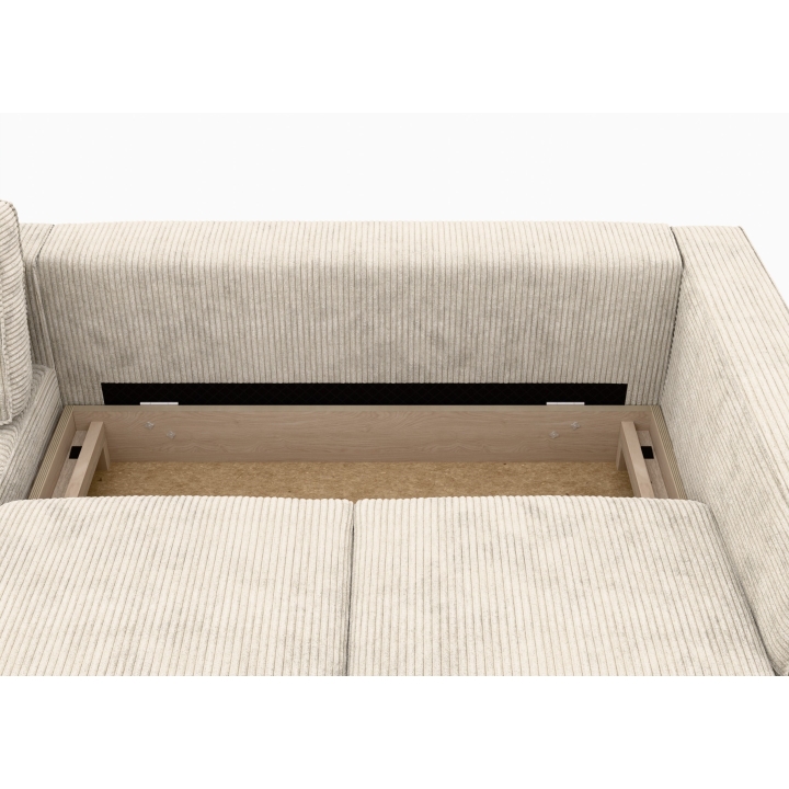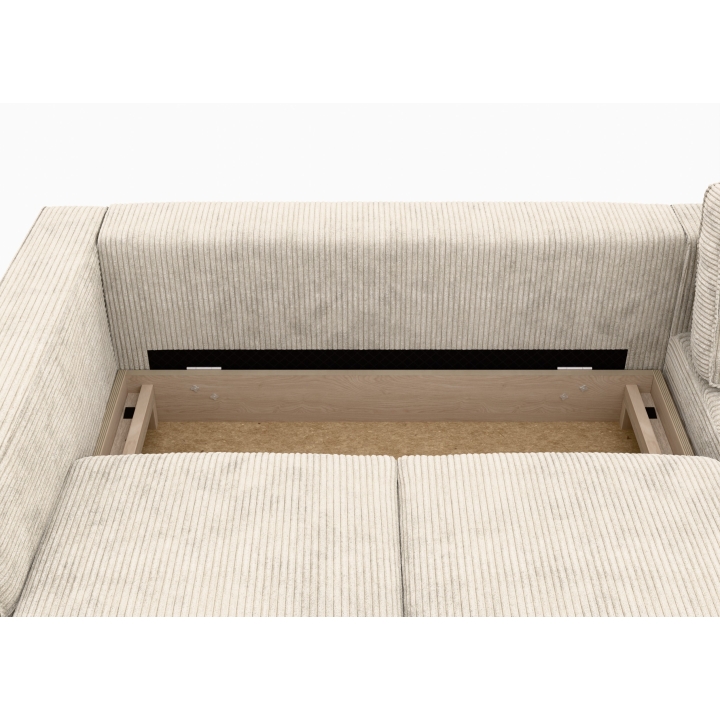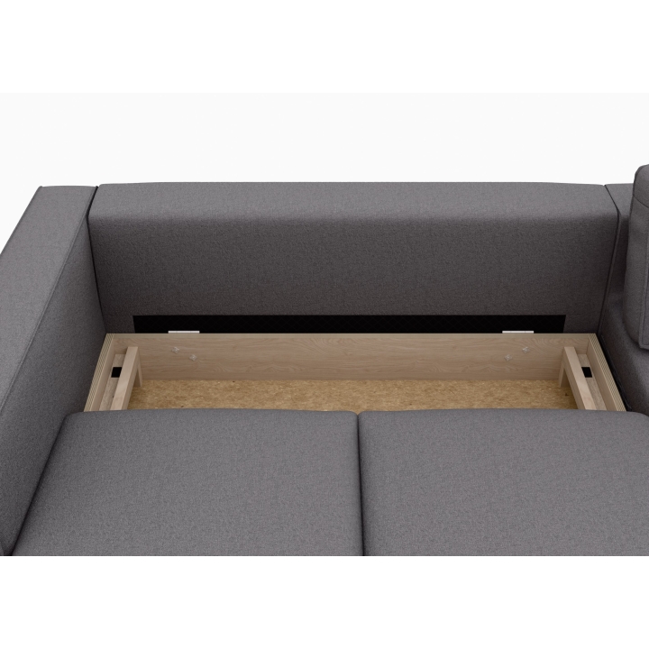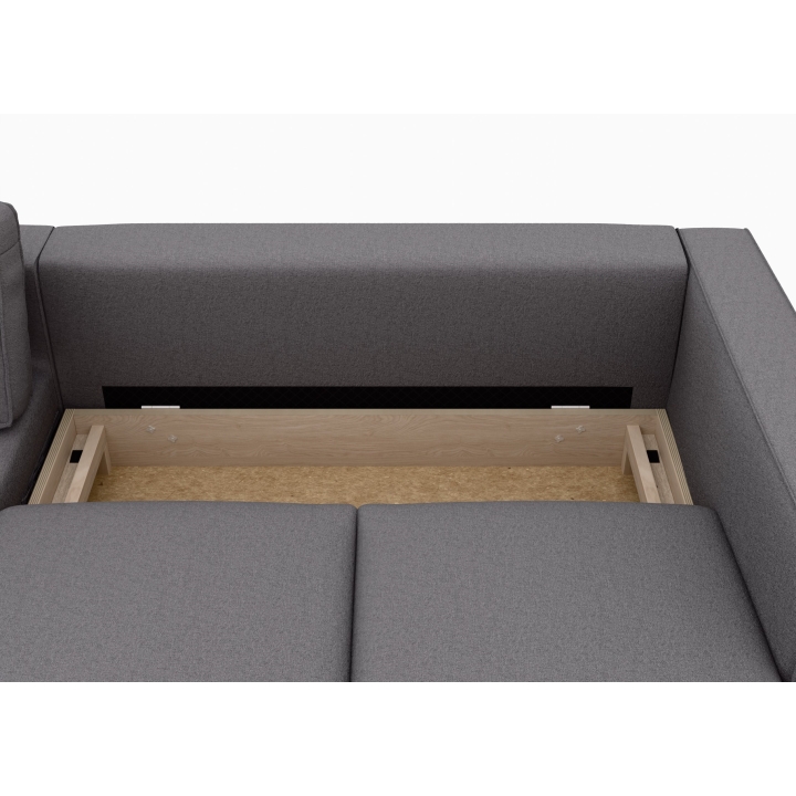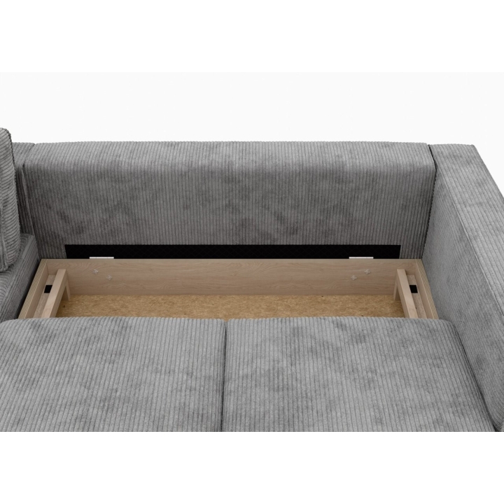 Narożnik Watkins wyposażony jest w funkcję spania typu DL oraz pojemnik na pościel, co czyni go meblem dostosowanym zarówno do relaksu w ciągu dnia, jak i do okazjonalnego nocnego wypoczynku. Powierzchnia spania wynosi 204 x 108 cm, co zapewnia przestrzeń dla dwóch osób. Pojemnik pozwala na wygodne przechowywanie kołdry i poduszek, oszczędzając miejsce w szafach.