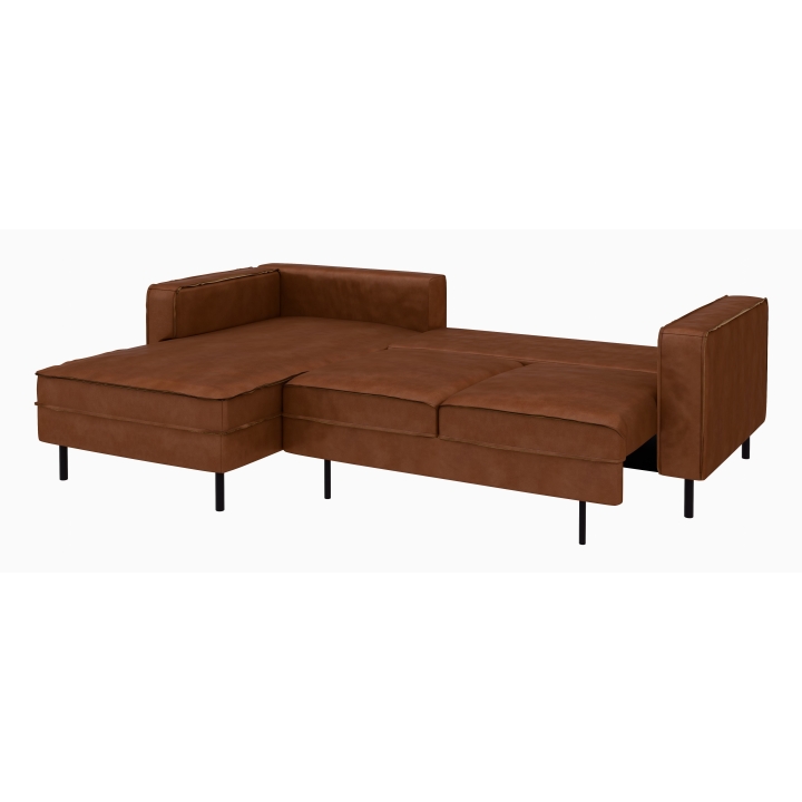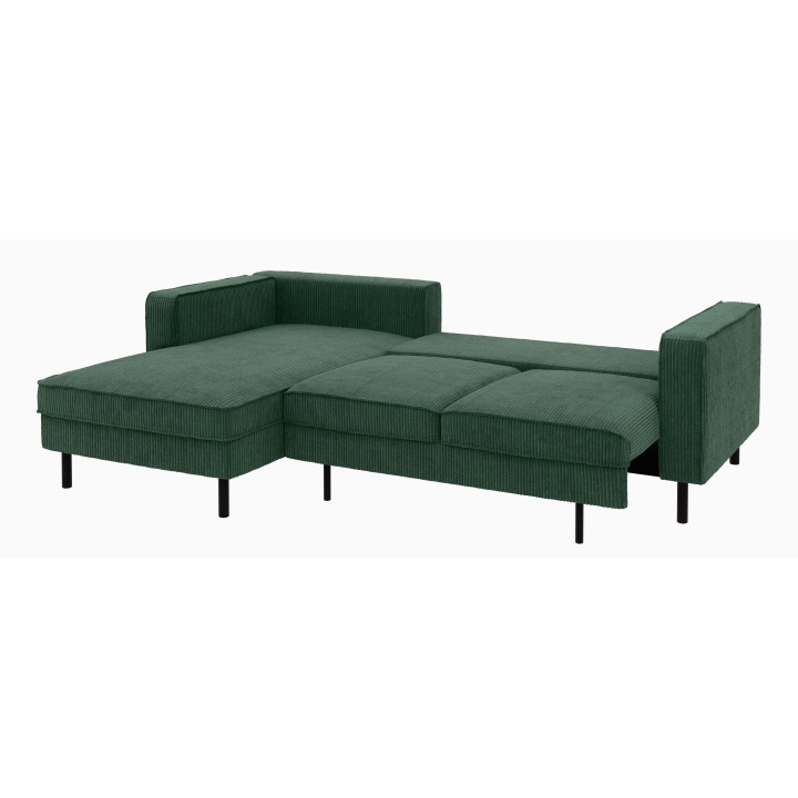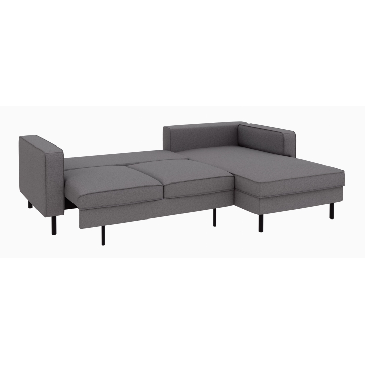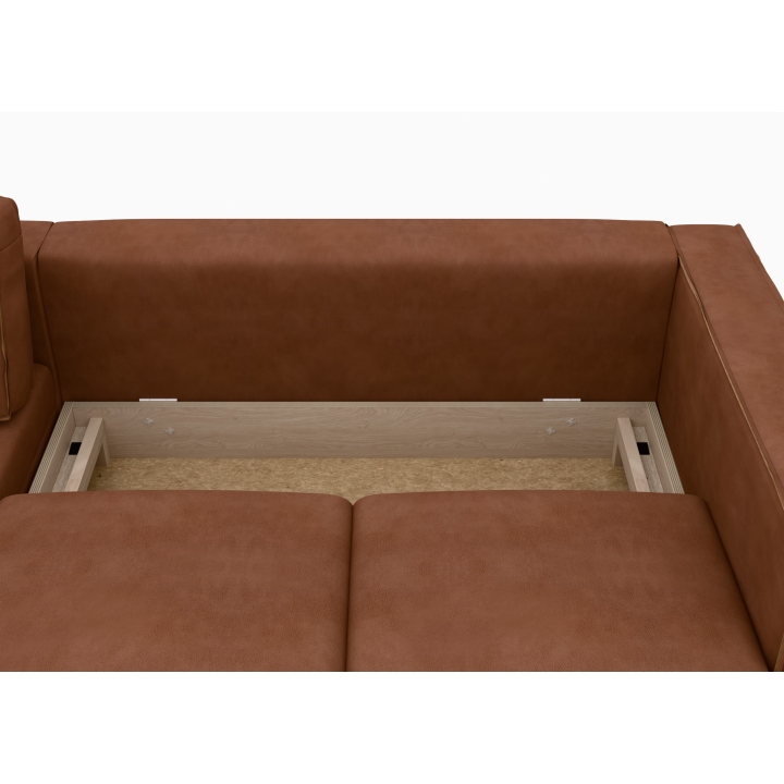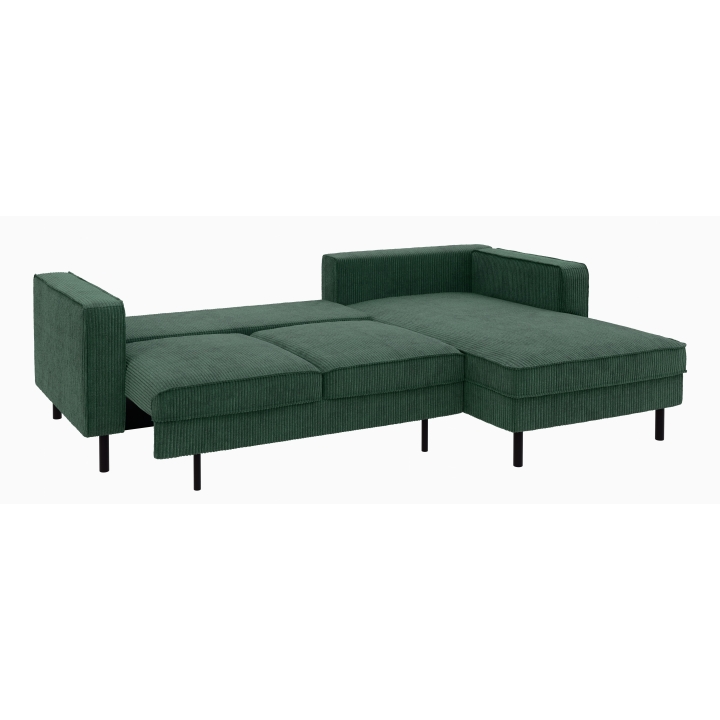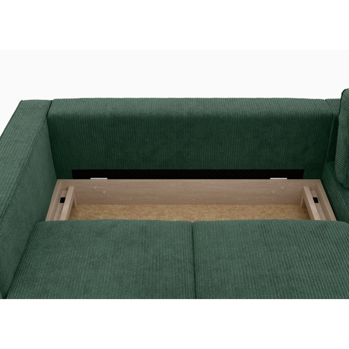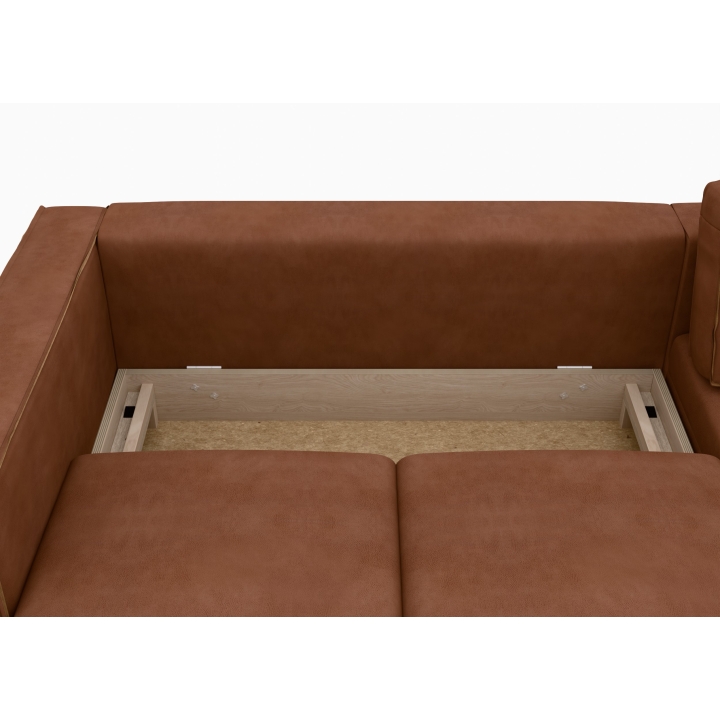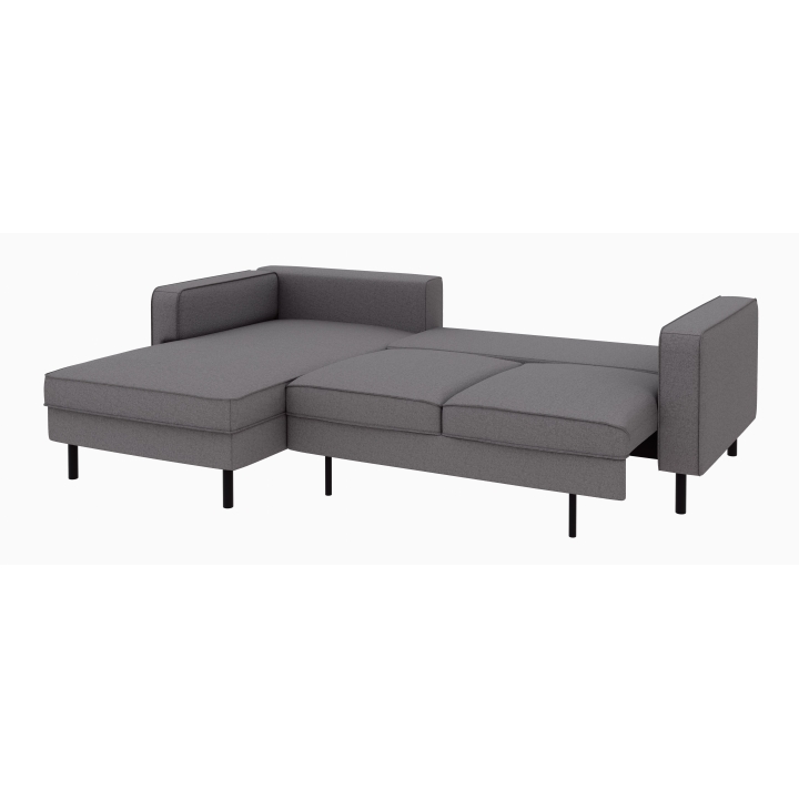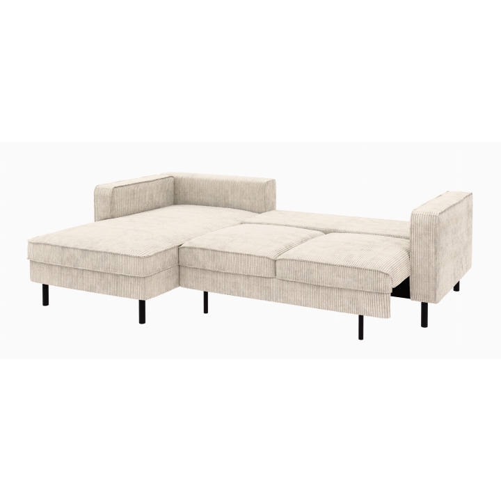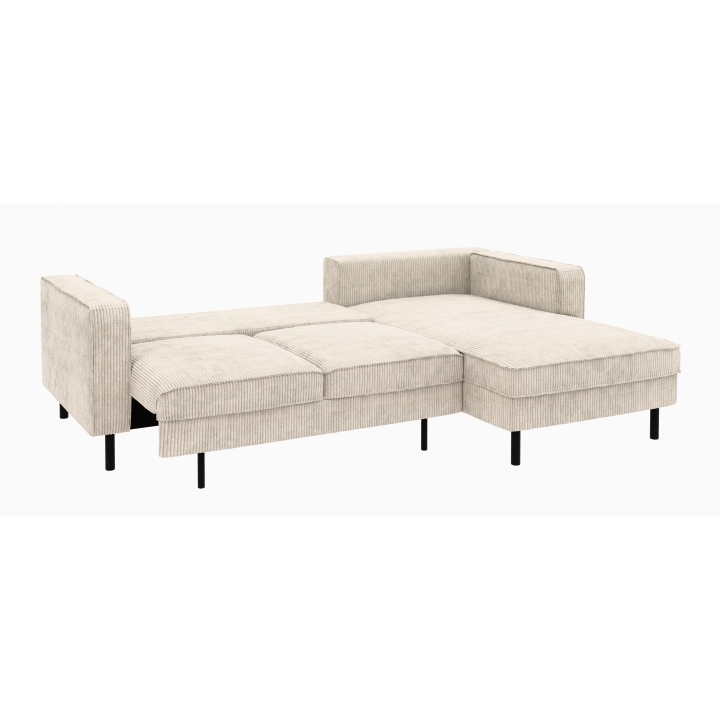 Narożnik Watkins wyposażony jest w funkcję spania typu DL oraz pojemnik na pościel, co czyni go meblem dostosowanym zarówno do relaksu w ciągu dnia, jak i do okazjonalnego nocnego wypoczynku. Powierzchnia spania wynosi 204 x 108 cm, co zapewnia przestrzeń dla dwóch osób. Pojemnik pozwala na wygodne przechowywanie kołdry i poduszek, oszczędzając miejsce w szafach.