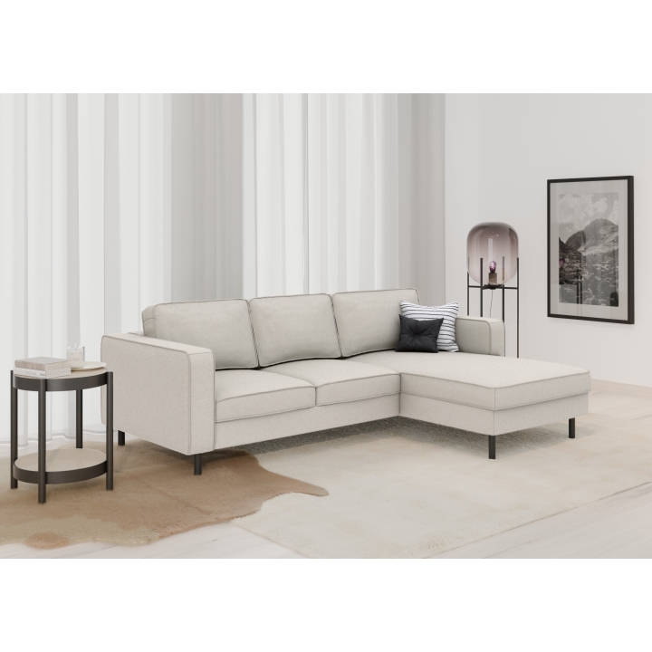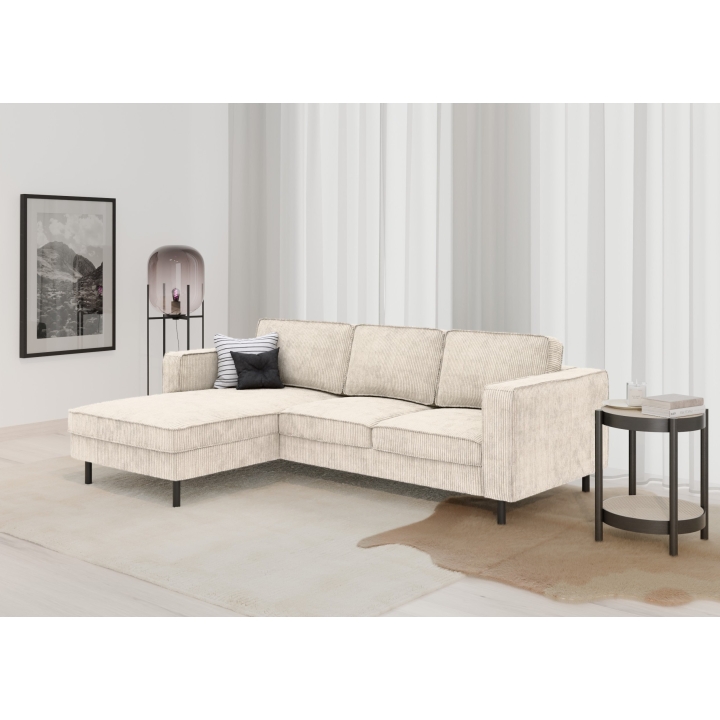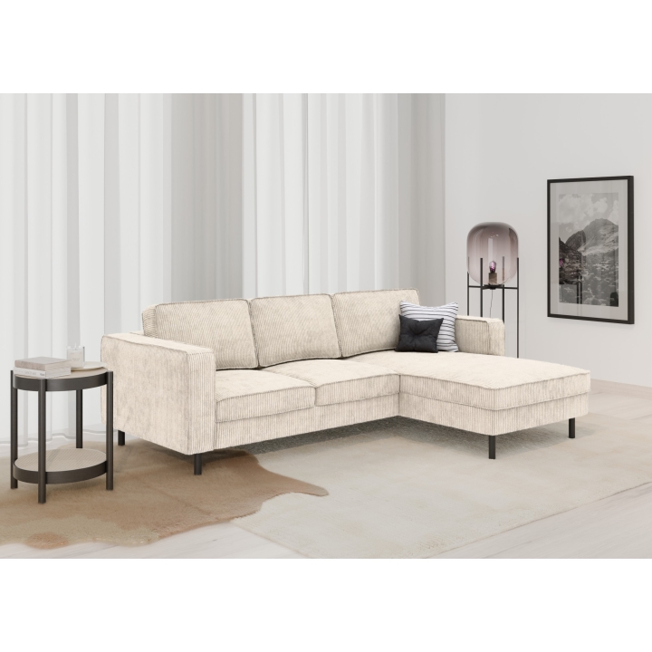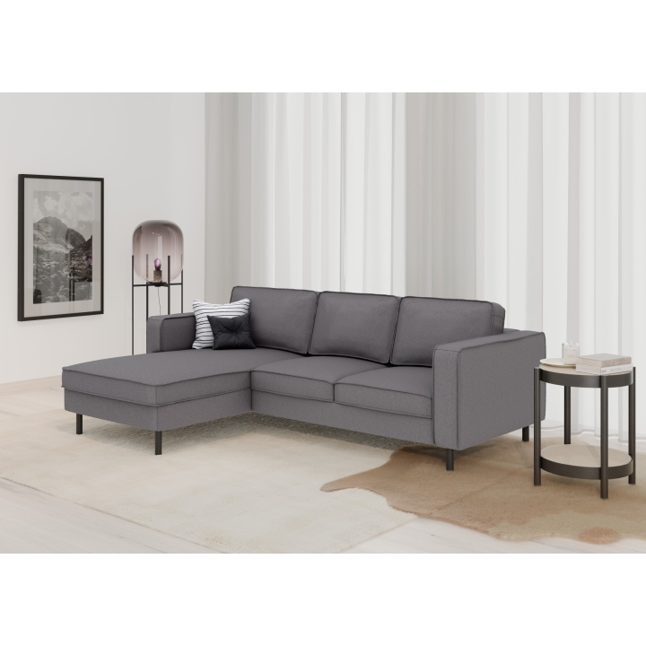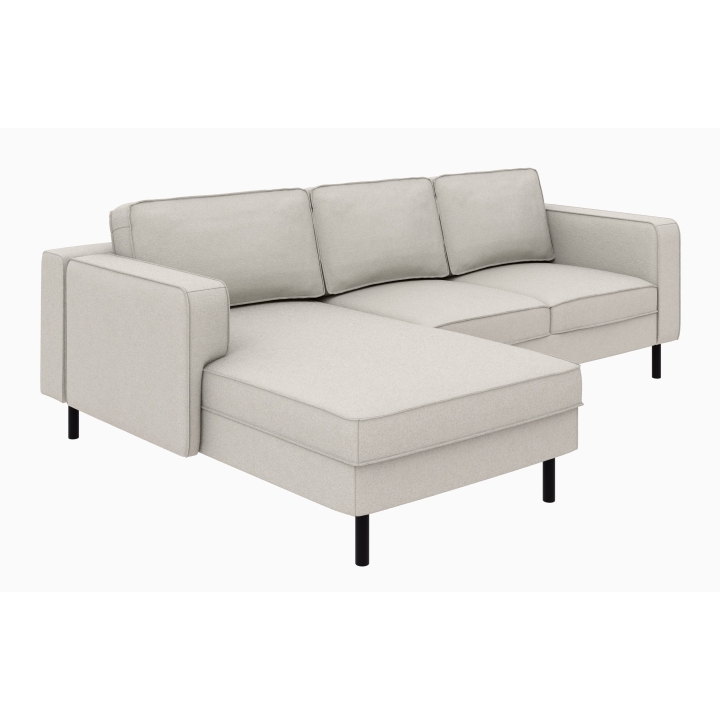 Narożnik Watkins to propozycja dla osób ceniących komfort oraz staranne wykończenie. Model dostępny jest w wersji lewostronnej lub prawostronnej, co pozwala dopasować go do układu wnętrza. Wysokie oparcie o wysokości 42 cm oraz miękkie poduszki oparciowe zapewniają wygodne podparcie podczas odpoczynku.