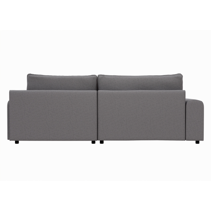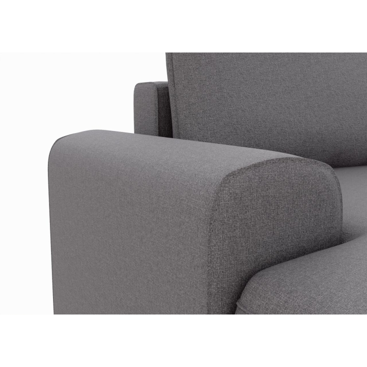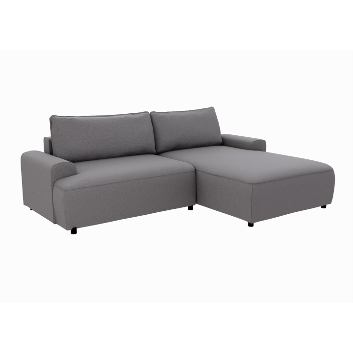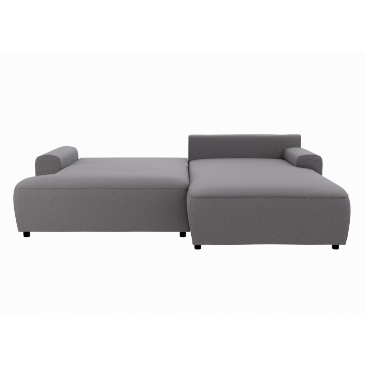 Całość wsparta jest na czarnych, matowych nogach z tworzywa sztucznego o wysokości 4,5 cm, które nadają stabilności i dyskretnego charakteru. Dzięki przemyślanej budowie narożnik zyskuje lekkość wizualną, mimo solidnej konstrukcji. Rozwiązanie to ułatwia także utrzymanie czystości pod meblem.