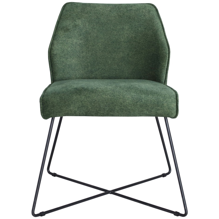 Stelaż krzesła tworzy metalowa podstawa w kolorze czarnym, nadająca konstrukcji wyjątkową odporność na obciążenia. Wyższe nóżki ułatwiają utrzymanie porządku pod meblem oraz podkreślają lekką formę całości. Taki dobór materiałów sprawia, że krzesło zachowuje stabilność i estetykę przez długi czas.