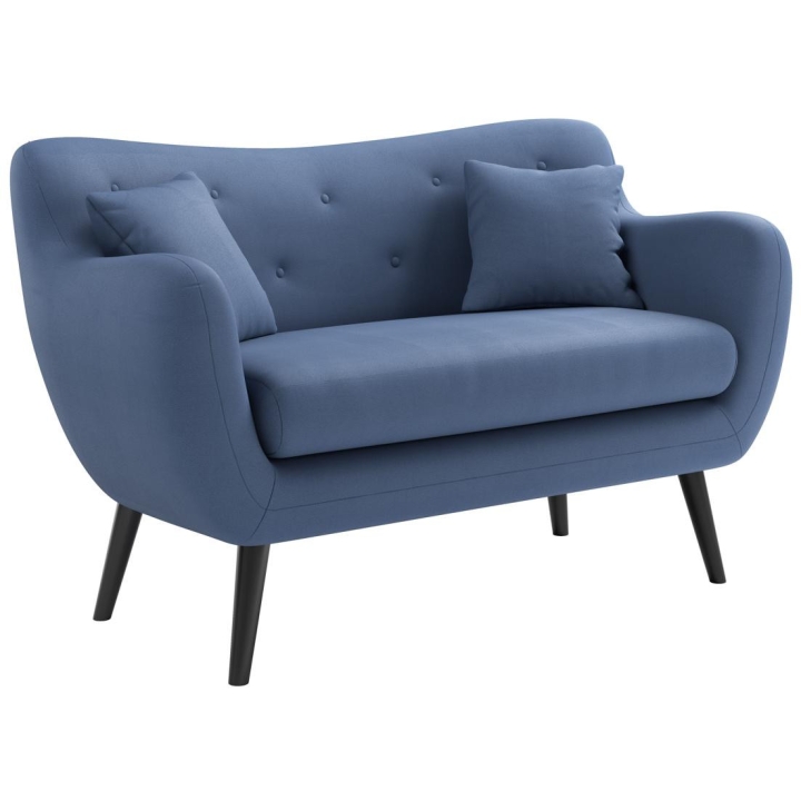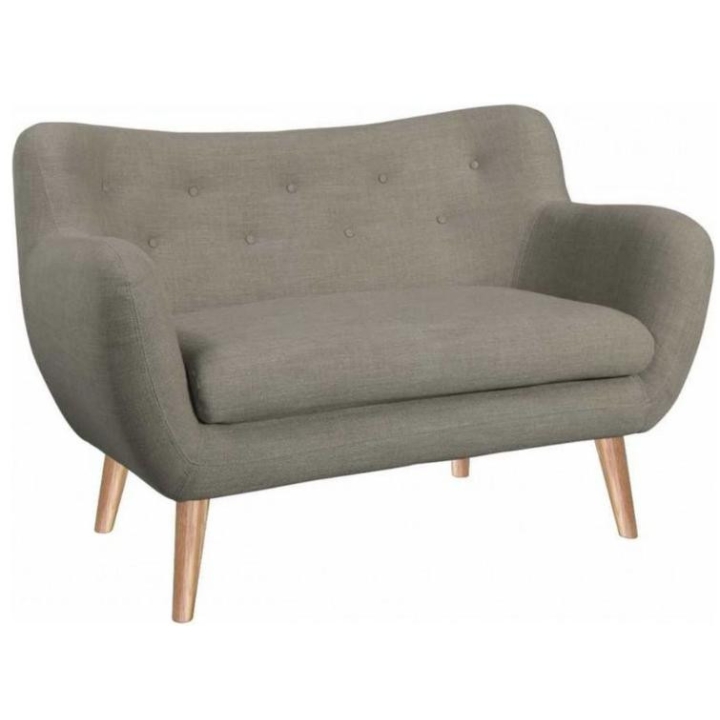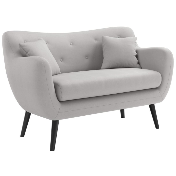 Dekoracyjne pikowanie oparcia przyciąga wzrok i nadaje sofie wyrafinowany charakter. Miękko wygięte podłokietniki komponują się z linią oparcia, tworząc przyjazną przestrzeń do relaksu. Całość spoczywa na drewnianych nóżkach, które subtelnie unoszą mebel i dodają mu lekkości.