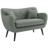 Wyjątkowe zaokrąglone siedzisko zostało zaprojektowane z myślą o wygodnym wypoczynku dla dwóch osób. Wypełnienie stanowią sprężyna falista oraz pianka poliuretanowa, dzięki czemu całość zapewnia odpowiednie podparcie i trwałość. Oparcie oparto na paskach elastycznych i piance, co przekłada się na komfort podczas dłuższego siedzenia.