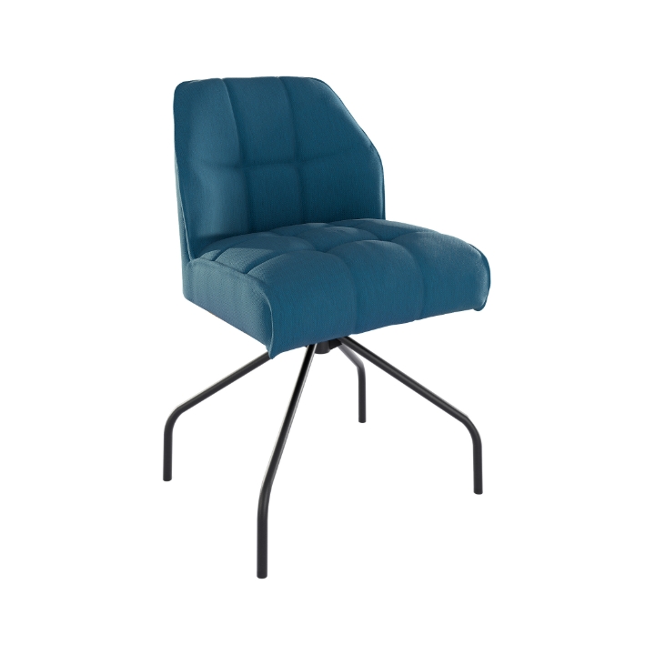 Metalowe nogi o obrotowej funkcji pozwalają na swobodne manewrowanie bez konieczności przesuwania całego krzesła. Wysokie nóżki dodają lekkości wizualnej, a ich metalowa struktura zapewnia odporność na codzienne obciążenia. Obrót siedziska to rozwiązanie ułatwiające wstawanie i zmianę pozycji, szczególnie w przestrzeniach, gdzie liczy się wygoda ruchu.