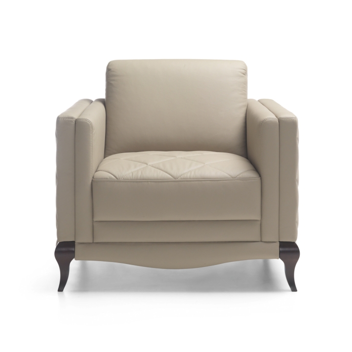 Fotel Laviano marki Bydgoskie Meble to starannie zaprojektowany element wyposażenia, który wprowadza do pomieszczenia wyraźny akcent wyrafinowanego rzemiosła. Jego charakter podkreślają ozdobne pikowania na siedzisku oraz podłokietnikach, tworzące efekt subtelnej dekoracji. Delikatnie wygięta przednia dolna listwa nadaje całości lekkości, a wysokie, gięte nóżki dodają konstrukcji harmonijnej formy.