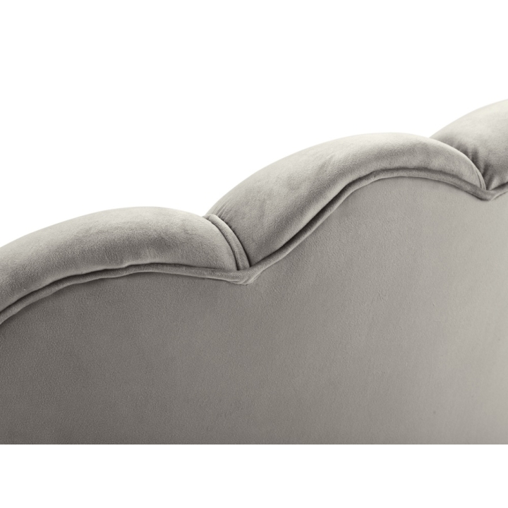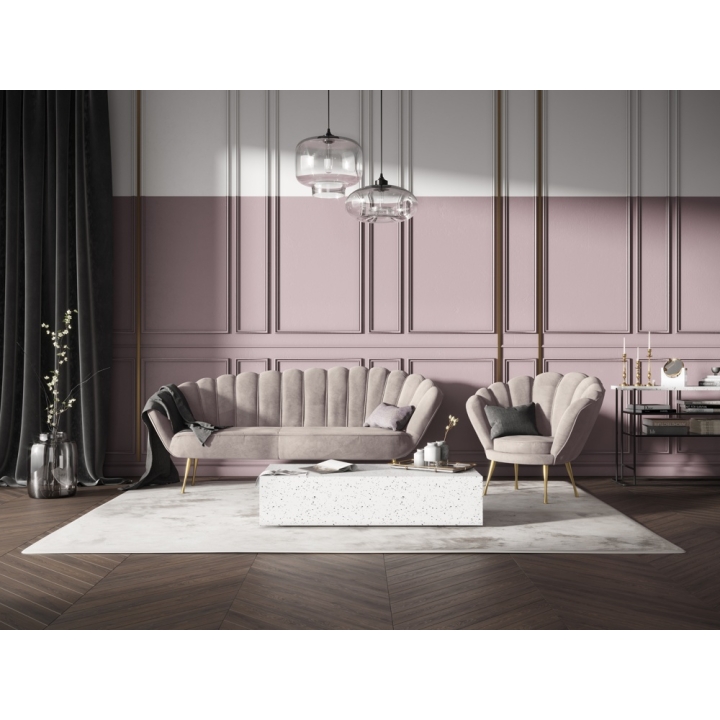 Sofa Kingston Cosmopolitan-design to model w stylu glamour, który wyróżnia się wysokimi metalowymi nogami ( 24 cm) w wybranym kolorze oraz tapicerką z tkaniny welurowej w dwóch wariantach do wyboru: Riviera lub Magic Velvet. Szerokość 224 cm, głębokość 95 cm, wysokość 85 cm, wysokość siedziska 45 cm sprawiają, że sofa świetnie sprawdzi się w eleganckich salonach, strefach wypoczynkowych i wnętrzach urządzonych w nowoczesnym stylu. Brak funkcji spania i pojemnika na pościel sprawia, że model ten został zaprojektowany jako komfortowe miejsce do codziennego odpoczynku. Boki sofy zaprojektowane niesymetrycznie, wysokość jednego z nich to 70cm , a drugiego 80cm.