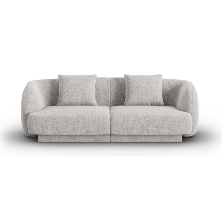 Sofa 2-osobowa Tulum Szenil Cosmopolitan-design to nowoczesny model o zaokrąglonych kształtach, który doskonale sprawdzi się w minimalistycznych i designerskich wnętrzach. Szerokość 180 cm, głębokość 90 cm, wysokość 70 cm oraz wysokość siedziska 40 cm zapewniają wygodę zarówno podczas codziennego relaksu, jak i spotkań towarzyskich. Tapicerka z tkaniny szenilowej Haga, dostępnej w szerokiej gamie kolorystycznej, nadaje sofie wyjątkową strukturę i efekt 3D. Dwie poduszki dekoracyjne w zestawie zwiększają komfort użytkowania, a niskie, czarne plastikowe nogi subtelnie komponują się z bryłą mebla.