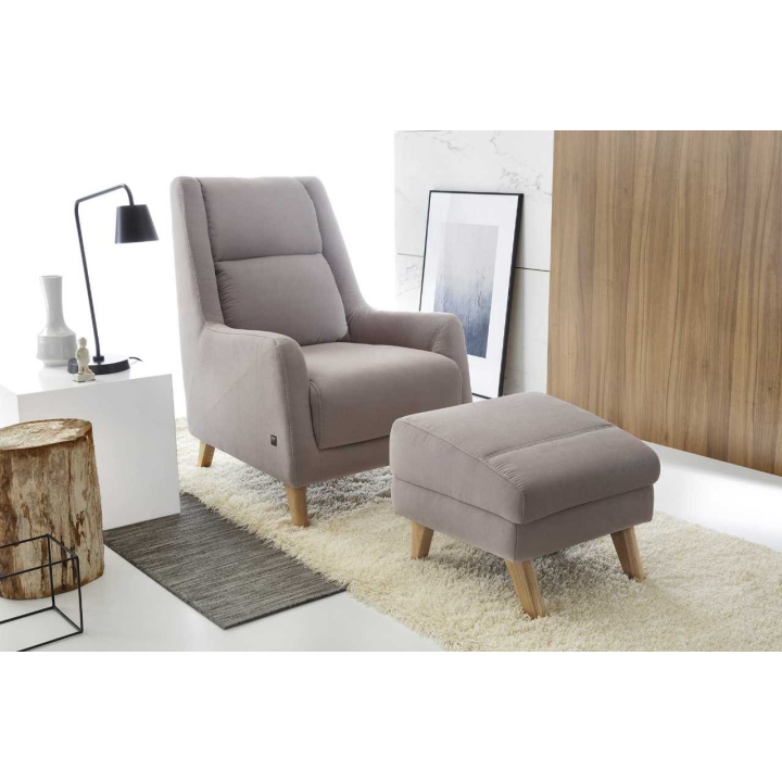 Konstrukcja oparcia opiera się na pasach elastycznych oraz zastosowaniu pianki najwyższej jakości. Dzięki temu mebel jest odporny na odkształcenia i zachowuje swój pierwotny kształt przez lata. Wysokie, drewniane nóżki dodają mu lekkości wizualnej, a jednocześnie ułatwiają utrzymanie czystości pod meblem.