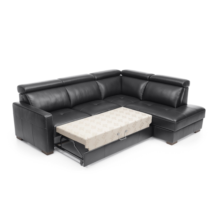 Model został wyposażony w funkcję spania z powierzchnią o wymiarach 120x197 cm, co sprawia, że może pełnić rolę dodatkowego miejsca noclegowego. W narożniku znajduje się również pojemnik na pościel, który pozwala na łatwe przechowywanie kołder czy poduszek. Dzięki temu mebel odpowiada zarówno na potrzeby wypoczynku, jak i organizacji przestrzeni.
