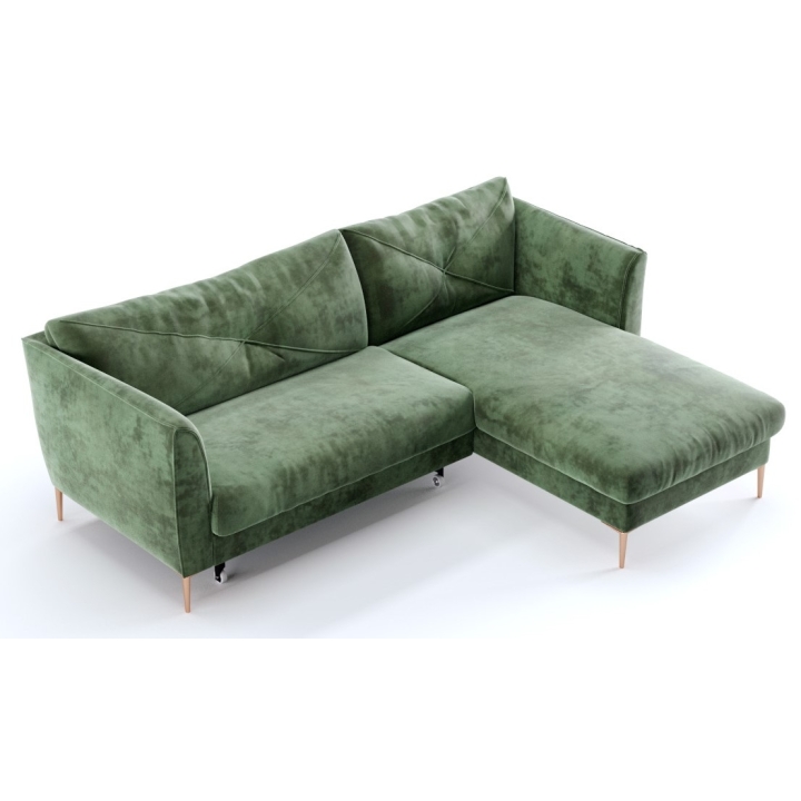 Mebel został zaprojektowany w kształcie L, a dostępne są dwa warianty: lewostronny oraz prawostronny (L/P). Komfort wypoczynku zapewniają wysokie podłokietniki, a także odpowiednio wyważone proporcje konstrukcji. Całość osadzono na solidnych metalowych nogach, dostępnych w wybarwieniach: czarne, miedź, srebrne lub złote.