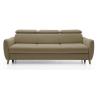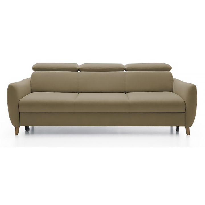 Sofa Hugo 3F posiada także funkcję spania, umożliwiającą szybkie przekształcenie mebla w wygodne miejsce noclegowe. Powierzchnia spania wynosi 190x125 cm, co pozwala na komfortowe przenocowanie gości. Mechanizm oparty jest na ramie drewnianej ze sprężyną falistą i pianką poliuretanową, gwarantując trwałość i stabilność użytkowania.