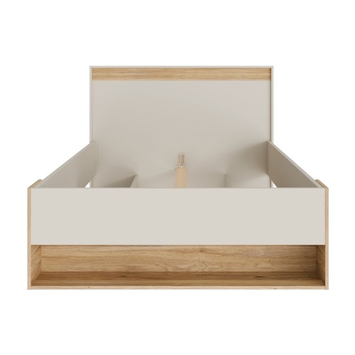 Konstrukcja posiada obrzeża ABS odporne na uszkodzenia mechaniczne. Do łóżka należy dokupić wkład sprężynujący. Stelaż przeznaczony jest do materaca o wymiarach 120x200 cm i grubości od 18 do 24 cm, a maksymalne dopuszczalne obciążenie całej konstrukcji to 110 kg. Odległość od podłogi do górnej krawędzi boku łóżka wynosi 437 mm, co zapewnia wygodę podczas użytkowania.