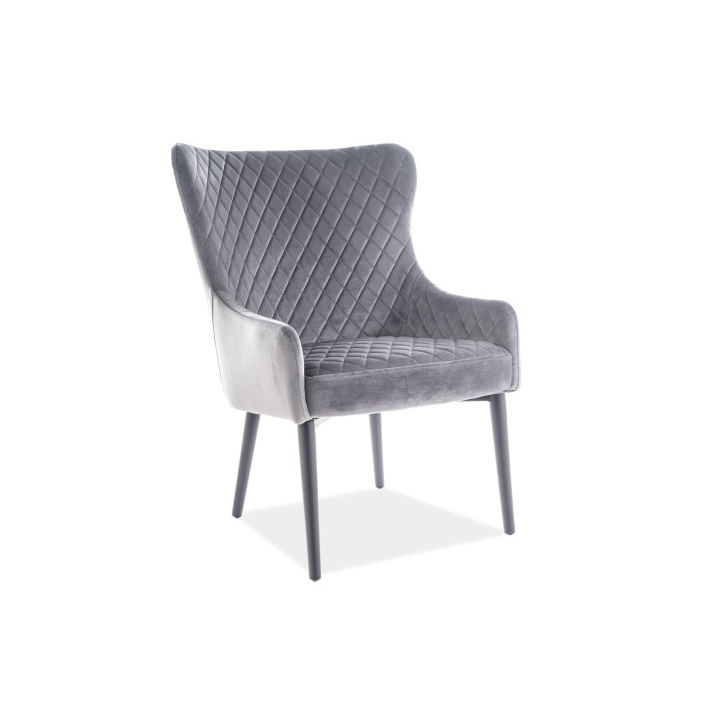 The Colin F armchair in Bluvel 14 upholstery is an elegant and comfortable proposal for lovers of modern design with a touch of classic elegance. Covered with velour fabric in a deep, stylish shade of navy blue, the armchair catches the eye with its soft sheen and exceptional cosiness. The rounded backrest and comfortable seat provide comfort for everyday lounging, while subtle stitching adds a sophisticated touch. The stable base with black metal legs emphasises the modern style of the furniture and guarantees durability. Colin F will be perfect both in the living room and in an elegant reading corner or study, creating a place to relax in beauty.