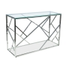 Stylish console Escada C by Signal Meble, which emphasises the original character of your interiors. It perfectly suits rooms arranged in modern or glamour style. It will find its place in the hallway as a designer table that will draw attention of your guests, an original coffee table in the living room or a beautiful dressing table where you can put your cosmetics. The base of the Escada C console is made of metal in chrome. It is presented as a designer, asymmetrical combination of small elements, which creates a spectacular visual effect. Adding to the overall look is the beautiful rectangular top made of tempered glass.