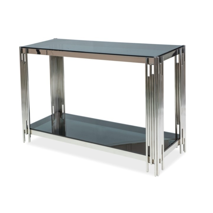 Designer console Fossil C by renowned manufacturer Signal Meble, which attracts attention with its unusual design and modern construction. This piece of furniture will perfectly present itself in almost every room of your home - in the living room it will serve as an original coffee table, placed in the hallway it will decorate your photo frames, and in the bedroom you will use it as an elegant dressing table. The Fossil C console impresses with a subtle top made of smoked tempered glass - one at the top, the other at the bottom - to which a beautiful chrome metal frame has been added. As a whole, it gives your interior not only an aesthetically pleasing, but above all luxurious character, and you can enjoy the numerous functionalities that the Fossil C console will offer you.