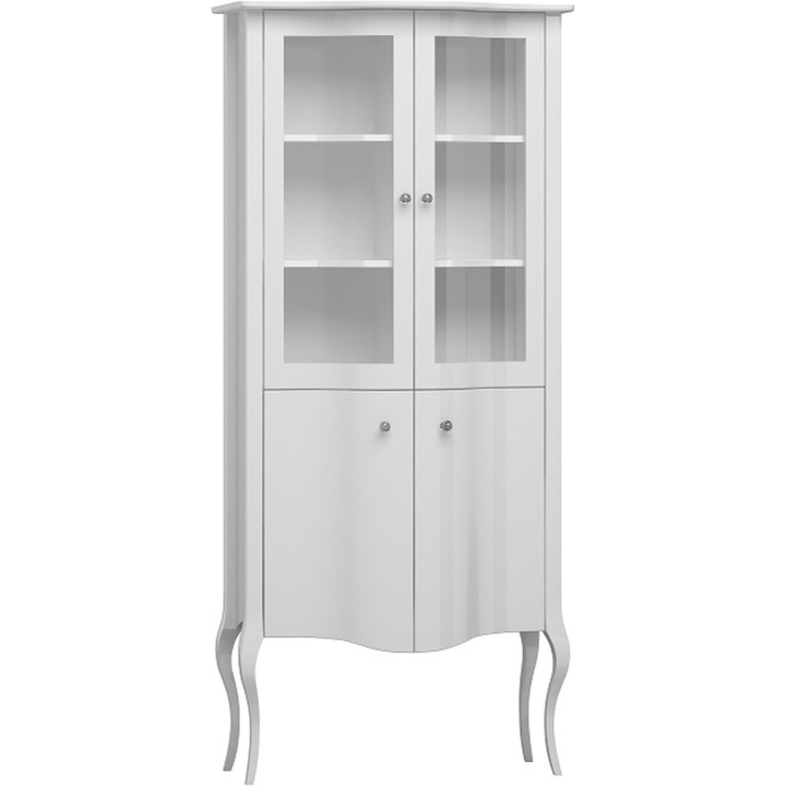 The Barocco New BN09 showcase from the Polish manufacturer Art-Futuro is the ideal solution for those looking for a piece of furniture that combines storage with exclusive glamour-style design. Made from the highest quality materials, such as lacquered MDF and wood, it ensures durability and robustness, allowing it to be used for many years. This spacious display cabinet offers plenty of space to store and display your favourite items on the three shelves behind the glass doors. The cabinet behind the lockable arched doors is roomy and will discreetly help to keep things tidy. In addition, its striking high-gloss white finish adds a special touch to the room. It has been carefully designed and manufactured with attention to detail. Solid construction and high-quality materials guarantee not only durability, but also complete satisfaction from owning this unique piece of furniture. Thanks to the hinges with a decelerator, the doors open smoothly and quietly, providing convenience of use, and the aluminium handles are as ergonomic as they are elegant.