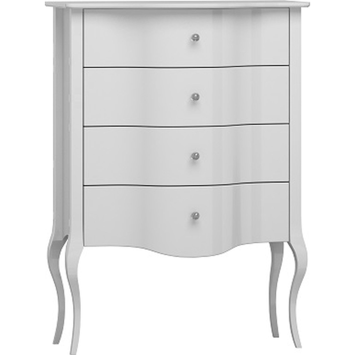 The Barocco New BN10 chest of drawers by Art-Futuro is the perfect solution for those looking for a piece of furniture that combines storage with a designer look. Made from the highest quality materials, it ensures durability and sturdiness, allowing you to use it for many years. This elegant chest of drawers offers plenty of storage space for a variety of items. Four capacious drawers provide convenient placement of your belongings. The chest of drawers has been carefully designed and manufactured with attention to detail. The solid construction and high-quality materials guarantee not only durability, but also complete satisfaction from owning this unique piece of furniture. The chest of drawers is not only a practical piece of furniture, but also a real ornament of the interior. Its exquisite glamour design and precise finish in stunning high-gloss white give the room a luxurious look. Thanks to the drawers with soft-close system, the doors open gently and quietly and the aluminium handles are as ergonomic as they are elegant.