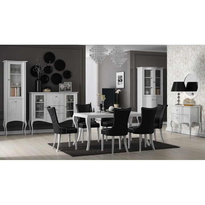 The S31 Barocco New table comes from the Polish manufacturer Art-Futuro. The Barocco New BN31 table is an ideal solution for those looking for a piece of furniture that combines high quality workmanship with a striking appearance. Made from the highest quality materials, it guarantees durability and solidity, ensuring long-lasting use. This beautiful table is the perfect choice for larger family gatherings and parties with friends. Its striking high gloss finish adds a luxurious touch to the room. The sturdy construction and high-quality materials ensure not only an aesthetically pleasing appearance, but also durability for years to come. Whatever your interior design, this table blends in perfectly, adding a unique touch.