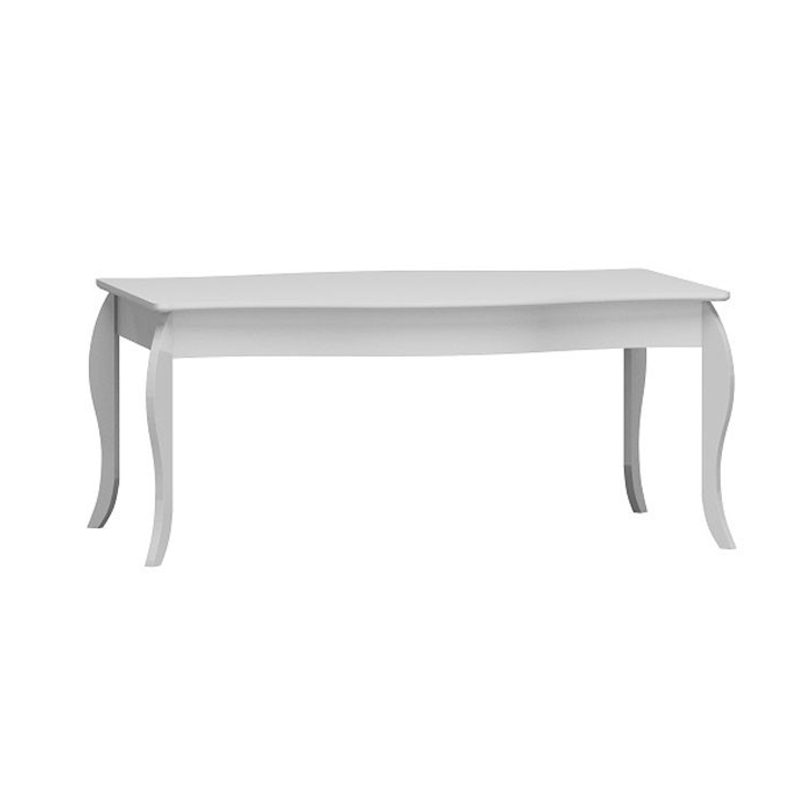 The furniture's features include elegant styling, a high gloss lacquered top and gently curved wood legs.