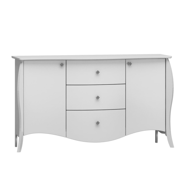 The Barocco chest of drawers from the Polish manufacturer Art-Futuro is a piece of furniture that attracts attention with its elegant style and perfect workmanship. Made from high quality high gloss lacquered board, this chest of drawers provides durability and solidity, allowing you to enjoy it for many years. This spacious chest of drawers offers plenty of space to store and organise your belongings. Three drawers and 2 lockable cabinets provide convenient storage for clothes, accessories or other essential items. In addition, its striking high gloss finish adds a unique touch to the interior. The solid construction and precise detailing guarantee durability and satisfaction with owning this unique piece of furniture. High wooden legs in a sophisticated shape add lightness to the piece, while aluminium handles emphasise the luxury design of the product. The functionality of the furniture is enhanced by drawers with a soft-closing system.