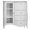The Barocco BR06 bar from the Polish manufacturer Art-Futuro is the perfect solution for those looking for a piece of furniture that combines storage with exclusive design. Made of high quality high gloss lacquered board, it ensures not only durability, but also many years of satisfaction from its use. The furniture is equipped with three capacious drawers, a glazed door and a handy bar. The exquisite high gloss finish of the chest of drawers gives it a chic shine. The chest of drawers has been carefully designed and manufactured with attention to the smallest details. The sturdy construction and precise finish guarantee not only durability, but also complete satisfaction in owning this piece of furniture. High wooden legs in a sophisticated shape add lightness to the piece, while aluminium handles emphasise the luxury design of the product. The functionality of the furniture is enhanced by a soft-closing system.