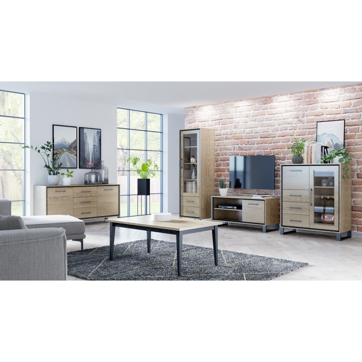 The Madox MX11 display cabinet by Art Futuro is a unique piece of furniture that combines functionality and style. Equipped with two glass doors, this display cabinet provides ample storage space for a variety of items, including bottles, glasses and serving accessories. Its sturdy natural veneer construction and careful finishing ensure durability and strength. The Madox MX11 display cabinet presents a design that blends perfectly with modern interior styles. Contrasting details in matt black emphasise the industrial character of the product. A piece of furniture that will allow you to create an elegant place to store and serve drinks in your home. The Madox MX11 display cabinet is not only a practical solution, but also a design element that adds elegance and style to your interior.