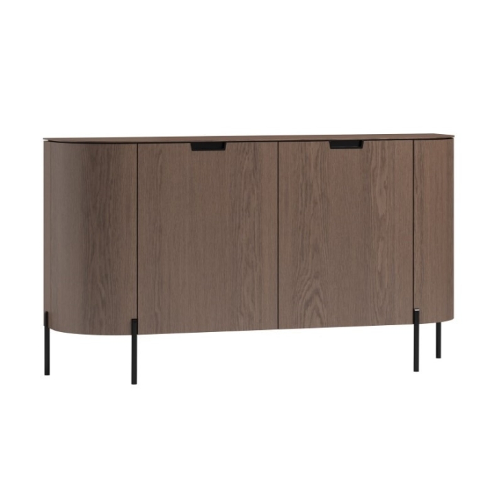 Discover the Mons MN04 two-door chest of drawers by Art-Futuro, dedicated to lovers of elegance and sublime simplicity in interiors. The rounded shapes of the solid and the finish in cool brown and matte black will give the room a unique character. The solidity and durability of the furniture is guaranteed by its manufacture from veneered MDF board, varnished on both sides. The metal legs and handles recessed in the door add a modern touch. The chest of drawers will fit perfectly into a harmonious space. A convenient solution is provided by the quiet closing mechanism in the doors. In addition, the elegant veneer top adds a chic touch. Enliven your interiors with harmonious subtlety with the Mons MN04 chest of drawers.