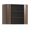 The Mons MN08 extension cabinet by Art-Futuro is the perfect solution for lovers of elegance and simplicity in interiors. Its rounded shapes, fluted fronts and finishes in cool brown with contrasting details in black mat add a unique character to the room. Made from the highest quality materials, including matt lacquered MDF, it guarantees solidity and durability. Metal legs and a matte black handle add a modern touch. The display cabinet has one glass door and two shelves, providing functional storage. A soft-closing mechanism increases the comfort of use.