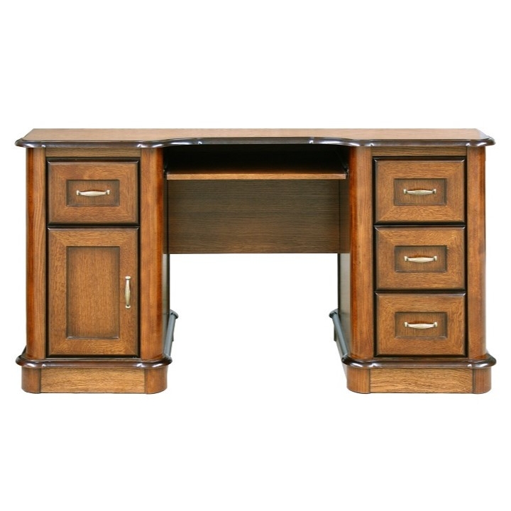 Features of the desk include classic design in antique cherry colour, construction from oak veneer and solid wood, door with silent closing and metal handles in the colour of old gold.