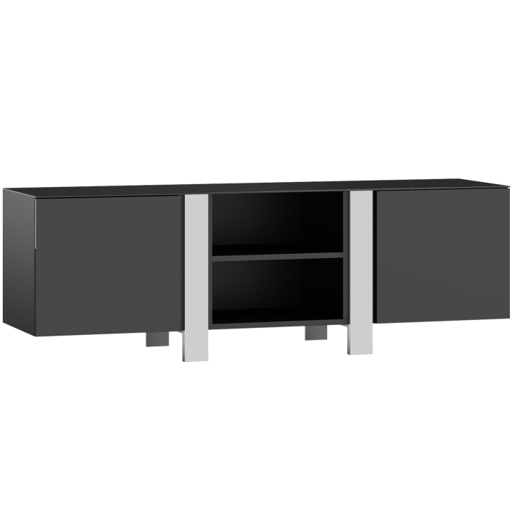 The Cromo collection by the manufacturer Art-Futuro is all about ultra-modern style, high-gloss fronts contrasting with a matt body and intriguing inserts with a mirror finish. The Cromo CL02 RTV cabinet is not only ideal for the living room or home cinema - it is the last word in interior design. The fine styling with an extremely deep gloss finish creates a delightful play of light. Made of high-quality laminated board, the chest of drawers guarantees long-lasting use. The chrome-coloured legs and handleless system make the furniture not only stylish, but also functional. The two open shelves will accommodate electronics, accessories and your record collection, while the black-painted glass-covered top not only crowns the styling, but is also very easy to clean and will comfortably accommodate a TV, hi-fi system or games console.
