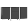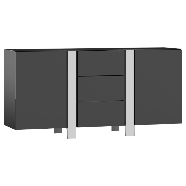 The Cromo CL05 chest of drawers from the manufacturer Art-Futuro is an ultra-modern style, with high-gloss fronts contrasting with the matt body and intriguing inserts with a mirror finish. The fine styling with an extremely deep gloss creates a delightful play of light. Made of high-quality laminated board, the chest of drawers guarantees long-lasting use. The chrome-coloured legs and handleless system make the furniture not only stylish but also functional. Two shelves behind the lacquered doors will easily accommodate our treasures, while three handy drawers will enable quick access to the most necessary utensils, documents or accessories. The black-painted glass-covered top not only tops off the styling, but is also very easy to clean and will perfectly accommodate a flowerpot, clock radio or photo collection.