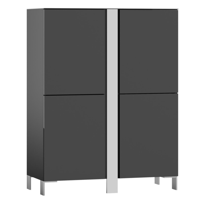 The Cromo CL06 chest of drawers from the manufacturer Art-Futuro is an ultra-modern style, high gloss fronts contrasting with the matt body and intriguing inserts with a mirror finish. The fine styling with an extremely deep gloss creates a delightful play of light. Made of high-quality laminated board, the chest of drawers guarantees long-lasting use. The chrome-coloured legs and the handleless door opening system make the piece of furniture not only stylish, but also functional. Four lockable shelves will accommodate electronics, accessories and the record collection. The black-painted glass-covered top not only tops off the styling, but is also very easy to clean and will perfectly accommodate a flowerpot, clock radio or photo collection.