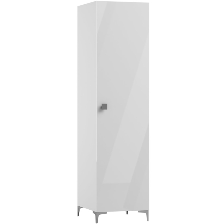 The Porto PT09 wardrobe from the manufacturer Art-Futuro is an ultra-modern style, high gloss fronts contrasting with the matt body and intriguing chrome details. The furniture's fine styling with an extremely deep gloss creates a delightful play of light. Made of high-quality laminated board, the wardrobe guarantees long-lasting use. Chrome-coloured legs and a soft-closing system make the furniture not only stylish, but also functional. The wardrobe is as roomy as it is aesthetically pleasing, and the spacious interior has been conveniently divided into four shelves.