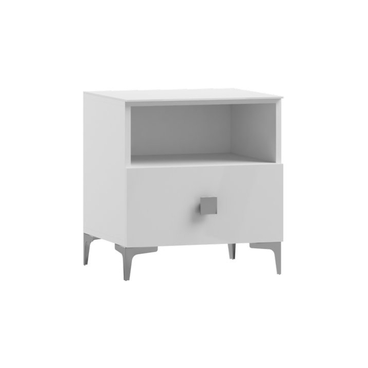 The Porto PT14 bedside cabinet by the manufacturer Art-Futuro is not only a fine design of the high-gloss front contrasting with the matt body. Made of high-quality laminated board, the cabinet also guarantees long-lasting and comfortable use. Chrome-coloured legs and a soft-closing system make the furniture not only stylish, but also functional. The drawer opens easily and is very roomy, while the top, covered in chic white painted glass, is not only the finishing touch to the styling, but is also very easy to clean and will perfectly accommodate a bedside lamp, alarm clock radio or cosmetics for evening grooming.