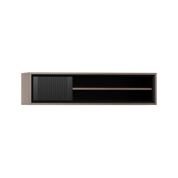Discover the perfection of design and functionality with our Linea LN01 wall cabinet. This piece of furniture was created with modern design trends in mind and looks great in an industrial style interior, offering geometric simplicity with unique fluted fronts. A delightful combination of minimalism and thoughtful functionality. The car cass covered with oak veneer and the fronts lacquered in a matt black shade create an elegant and modern composition.