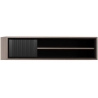 Features include modern styling with an industrial feel, lacquered fluted fronts, cool brown oak veneer body and handleless opening system.