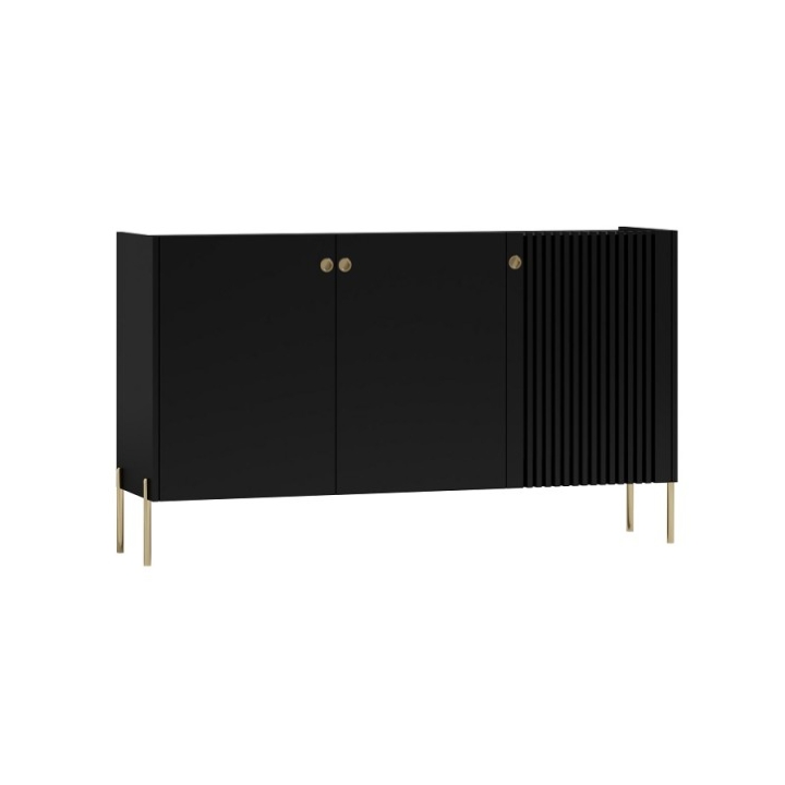 The Rennes collection is a stylish proposal from the Polish manufacturer Art-Futuro addressed to the most demanding customers. The design is based on simple shapes, broken in an intriguing way with lamellar fronts and slender metal legs inspired by loft style. The warm colour of uncoloured oak combined with black details and the stunning appearance of matt black decorated with gold accents create an eye-catching contrast. Quality workmanship and high-quality materials guarantee durability and many years of satisfaction with your purchase.