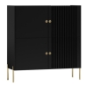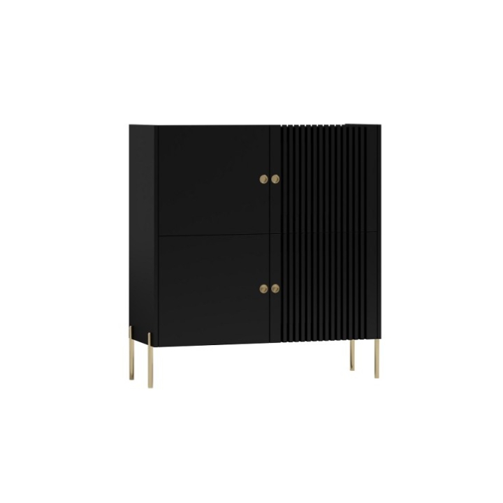 The Rennes collection is a stylish proposal from the Polish manufacturer Art-Futuro addressed to the most demanding customers. The design is based on simple shapes, broken in an intriguing way with lamellar fronts and slender metal legs inspired by loft style. The warm colour of uncoloured oak combined with black details and the stunning appearance of matt black decorated with gold accents create an eye-catching contrast. Quality workmanship and high-quality materials guarantee durability and many years of satisfaction with your purchase.