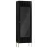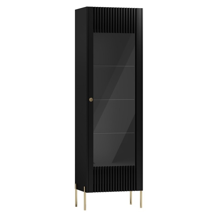 Features include stunning design, natural veneer construction in warm oak or matte black, glazed doors, glass shelves with backlighting, frame and handles made of metal in a contrasting colour and a soft-closing system.