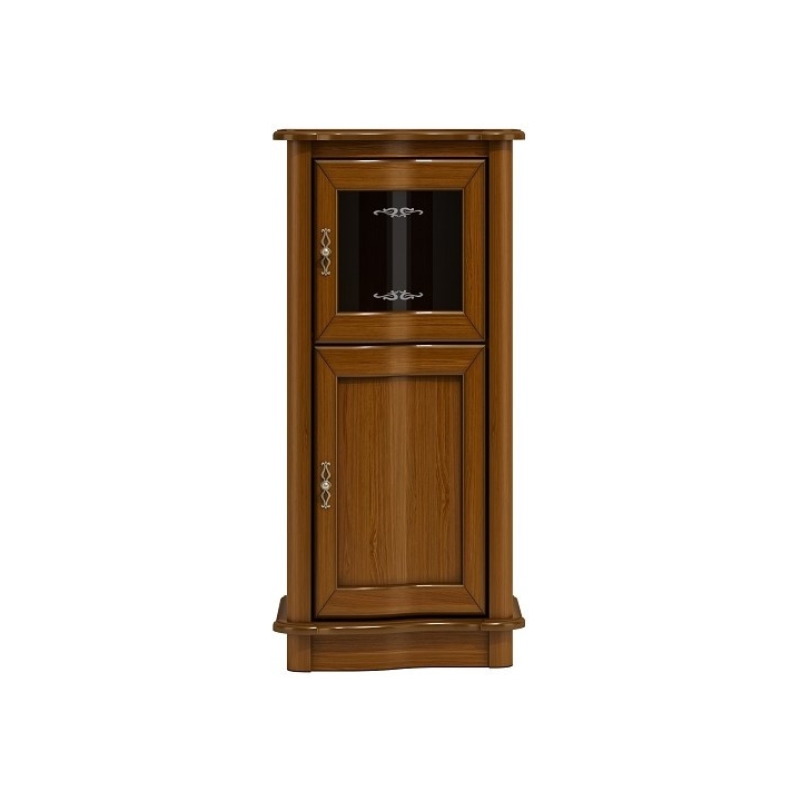 Features include classic styling, oak veneer construction with solid wood elements, curved fronts, doors with a soft-closing mechanism, a glazed bar and metal handles in the colour of old gold.
