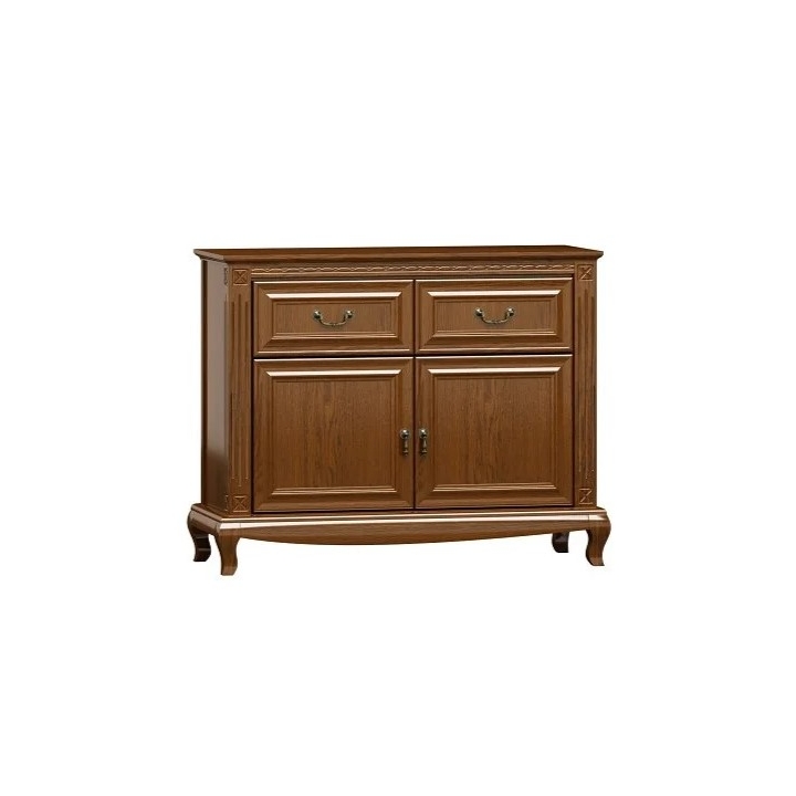 Kashmir R05 chest of drawers from the Polish manufacturer Art-Futuro. Made from high-quality walnut-coloured wood, this piece of furniture has an elegant finish that adds charm and warmth to the interior. The chest of drawers is designed to store and organise clothes, linen, accessories or other necessities. As a result, keeping the room tidy becomes easier. The design of the Kashmir R05 chest of drawers is classic and richly ornamented, making it easy to match the piece of furniture to interiors maintained in this style. The walnut colour adds elegance and a natural look, giving the room a cosy atmosphere. With two doors and two drawers, the furniture is an excellent choice for those who appreciate the harmony of design and practicality. The modern solutions used, such as hinges with silent closing and full-extension slides, guarantee smooth and comfortable use of the furniture.