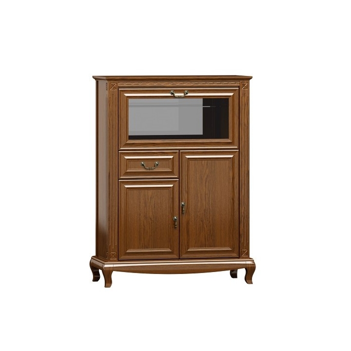 The Kashmir R12 bar chest of drawers from the Polish manufacturer Art-Futuro was made of high quality wood in a beautiful walnut colour. The furniture looks elegant and adds style to any interior. It has drawers, doors and shelves to organise and store various items. The design is classic and harmonious, and the walnut colour staining gives the furniture elegance and natural charm, adding cosiness and warmth to the room.