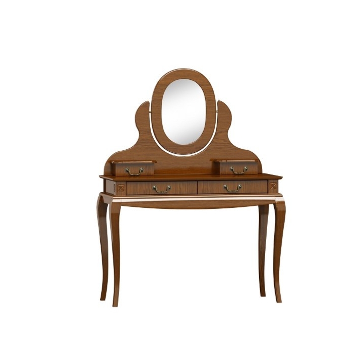 Features of the Kashmir dressing table include classic styling with characteristically curled legs, a swivel mirror in a circular frame, four handy drawers, oak veneer construction and metal handles.