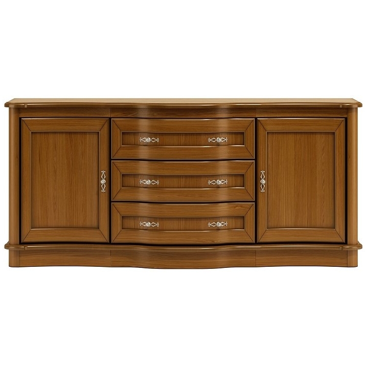 Discover unparalleled elegance and functionality with the Caren C05 chest of drawers, the perfect addition to your living room or lounge. The Caren system is an expression of timeless style, perfect for those who appreciate tradition and sophisticated design. The furniture's distinctive bold sides and rims guarantee solidity and comfort of use, emphasising its unique character. The chest of drawers is made of oak veneer, which ensures not only an aesthetically pleasing appearance, but also durability and resistance to damage. The curved fronts add elegance and a sense of luxury to the collection, creating a harmonious composition in any interior. Handles in the colour of old gold and a semi-gloss finish add a unique charm and exclusive character. The two doors conceal a spacious interior and close gently and quietly thanks to the soft-close system. Three drawers with a curved front and a laminated board box make it easy to store items and provide convenient access thanks to the full extension. The Caren C05 chest of drawers is not only a piece of furniture, it is also an expression of class and taste that is sure to enhance the aesthetic value of your interior.