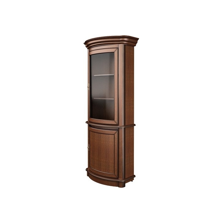 The Havana H23 corner display cabinet is a harmonious combination of solidity, elegance and timeless beauty. High-quality natural oak veneers and solid alder wood give the piece of furniture a unique charm that will bring a special atmosphere to your interior. Thanks to its solid construction, the furniture will retain its durability and refined appearance for many years. The classic brown colour and elegant handles in old gold add a unique touch. Designed with practical use in mind, the display cabinet offers plenty of storage space. The furniture offers glass and wooden doors, and the exposed shelves provide space for decorative items or a collection of media. The product is pre-assembled, so it is ready to use immediately after delivery. The canned hinges with retarder ensure the doors close smoothly and quietly for added convenience. Choose the Havana collection to bring a touch of romance and elegance to your interior. It is a luxurious piece of furniture that will delight you with its design and functionality for years to come.